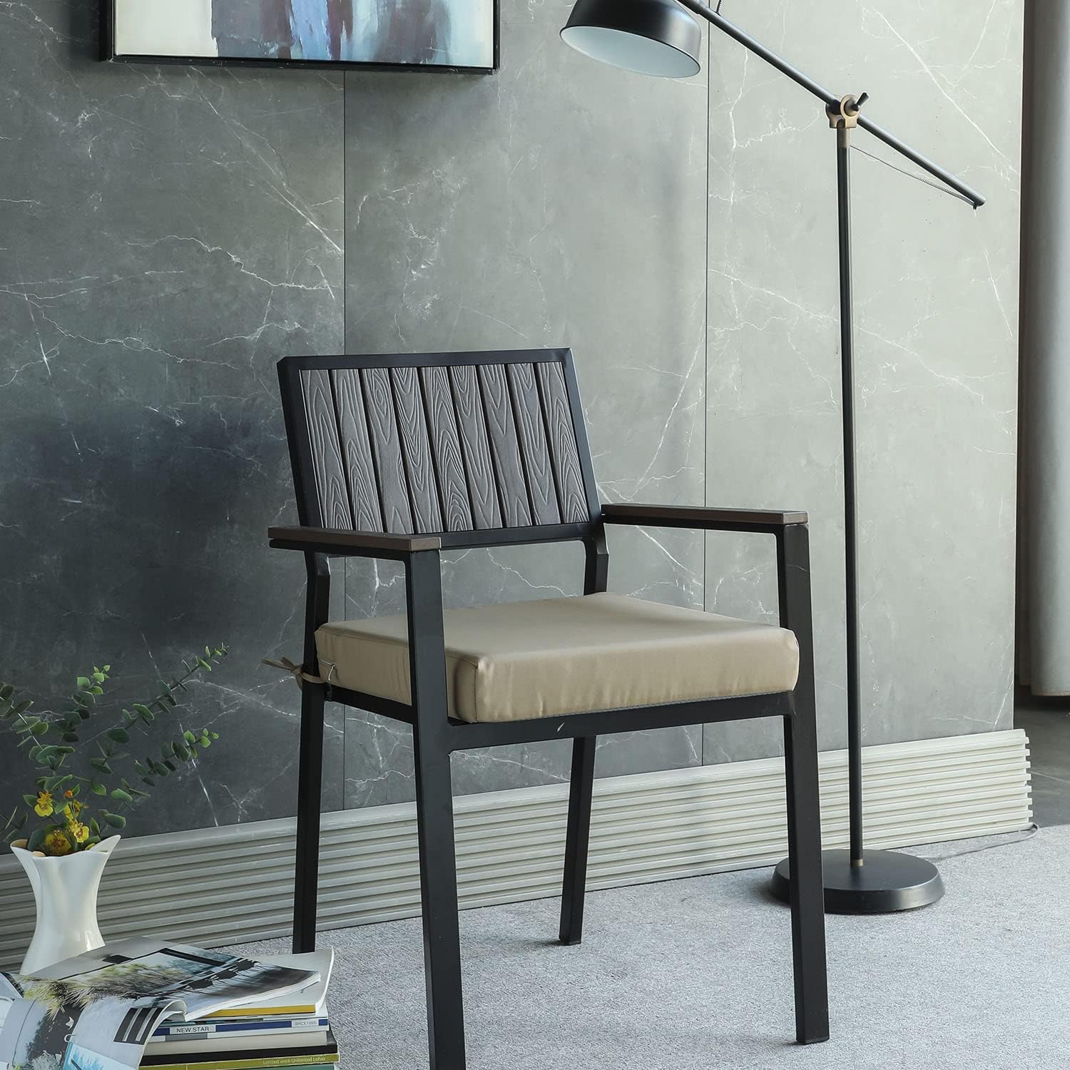 Patio Chair Cushions Set of 2 Non Slip Bottom Chair Pad with Ties Waterproof Square Outdoor Seat Cushion Replacement for Garden Swing Furniture 20x20 Inch, Light Khaki