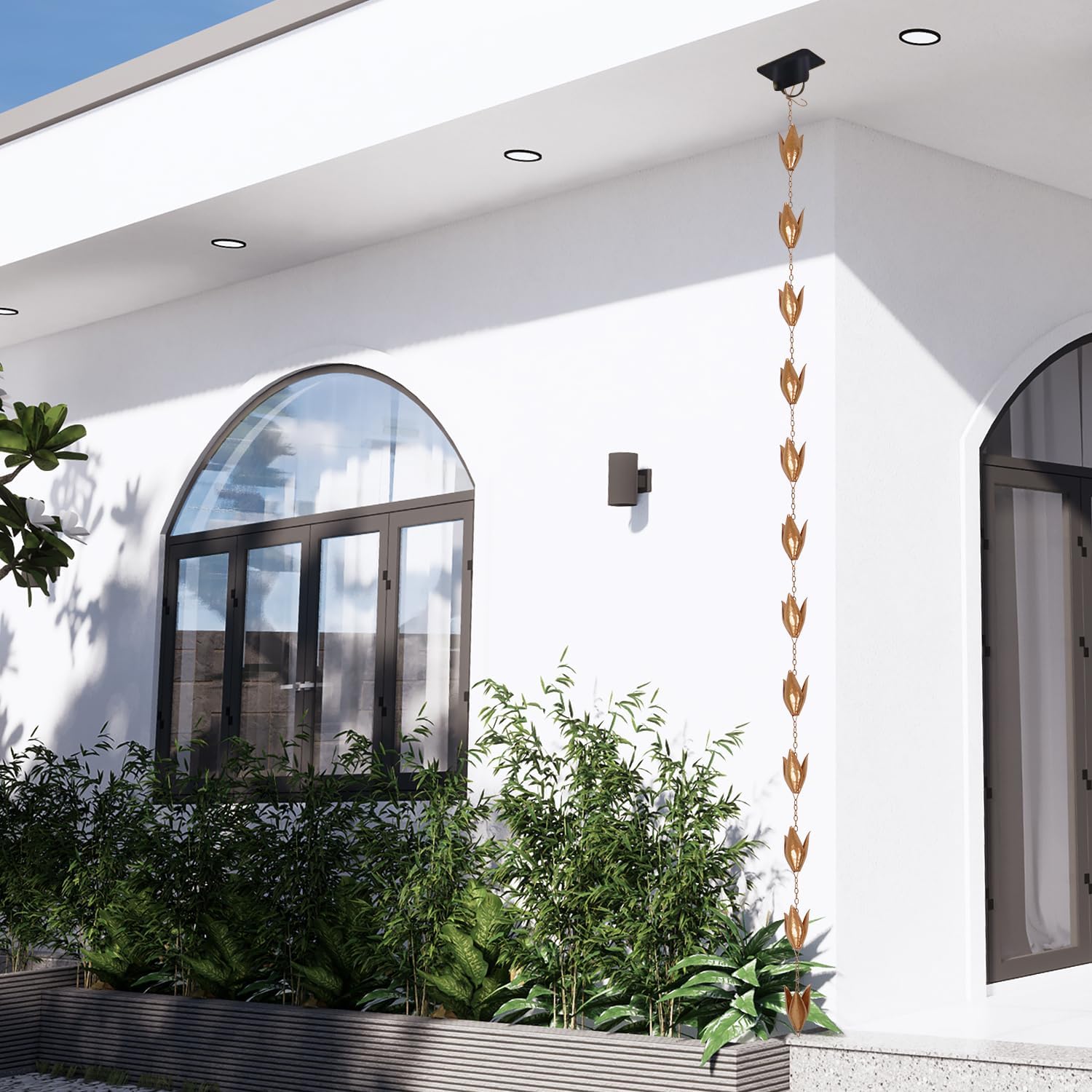 - Decorate Your House and Outdoor Garden with the Unique Rain Chain (Leaf shape) Replace Gutter Downspout & Divert Water Away from Home for Stunning Fountain Display