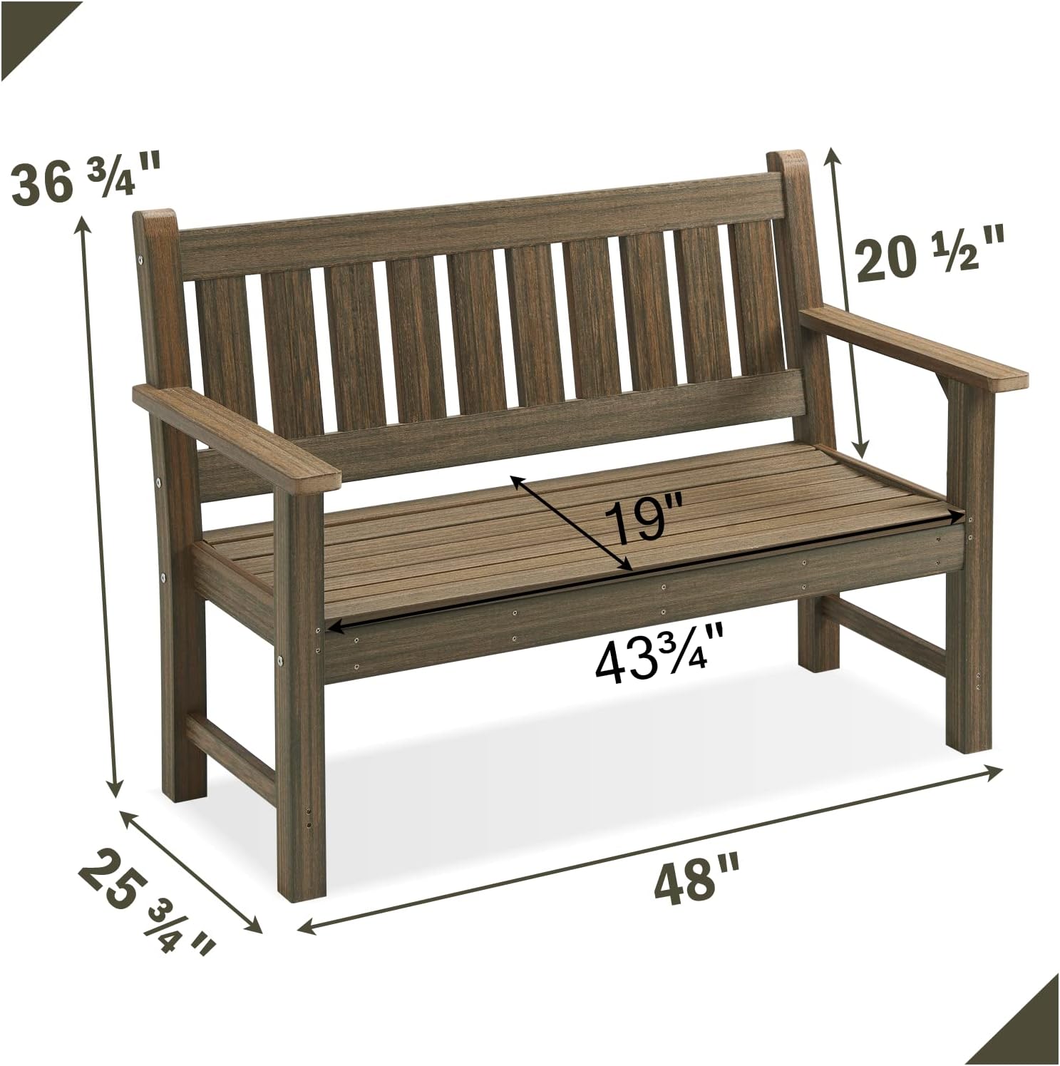 Outdoor Bench, 2-Person Garden Bench, Poly Lumber Patio Bench for Outdoors, Porch, and Park (Light Brown)