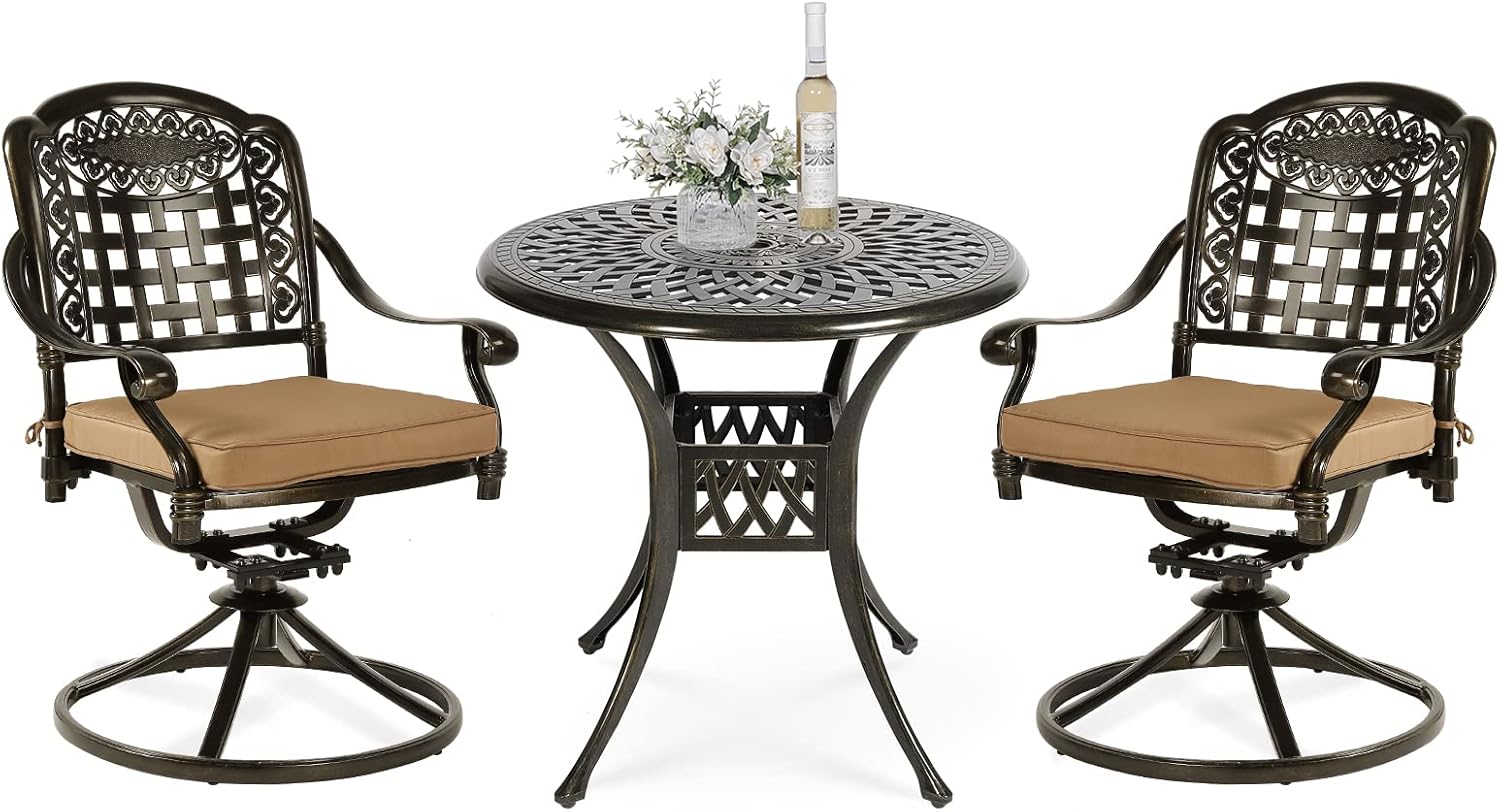 VIVIJASON 3-Piece Patio Bistro Set, Outdoor All-Weather Cast Aluminum Furniture Dining Set, Include 2 Swivel Chairs and 31" Round Table w/Umbrella Hole for Balcony, Lawn, Garden, Antique Bronze