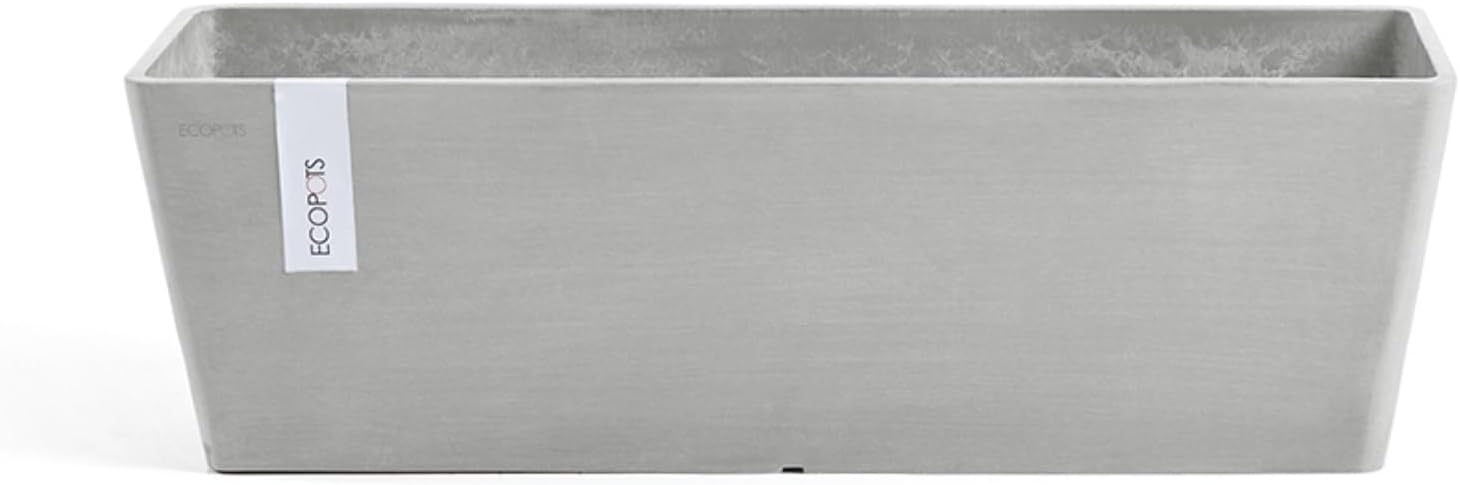 Ecopots Bruges Durable Modern Rectangular Indoor/Outdoor Recycled-Based Composite Flower Pot Planter, White Grey, 31.5"
