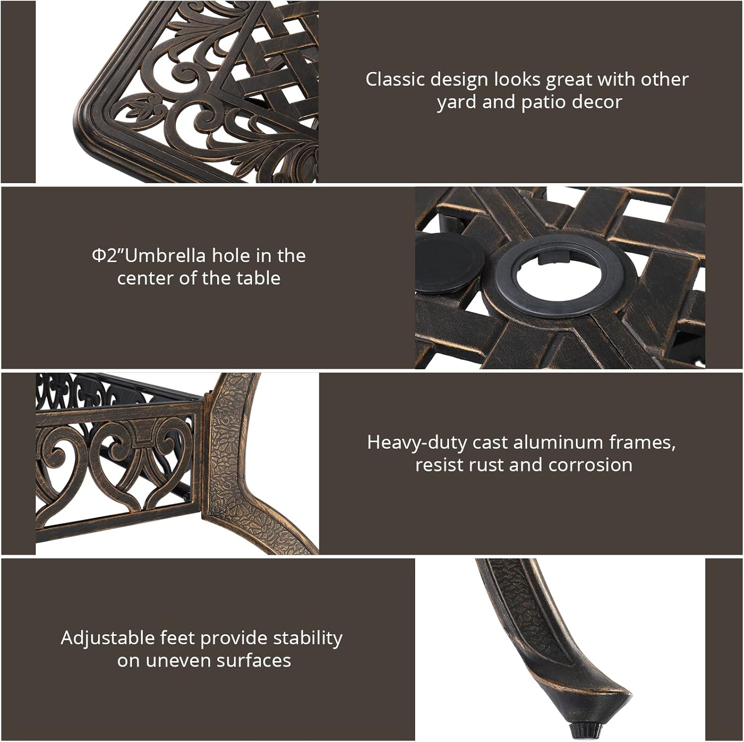 - Easy to Clean and Maintain: The cast aluminum material is easy to clean. Simply wipe it with a damp cloth to keep the table looking new. Its weather-resistant properties mean you don't have to worry about fading or rust, allowing you to enjoy the convenience and beauty of this table for years to come