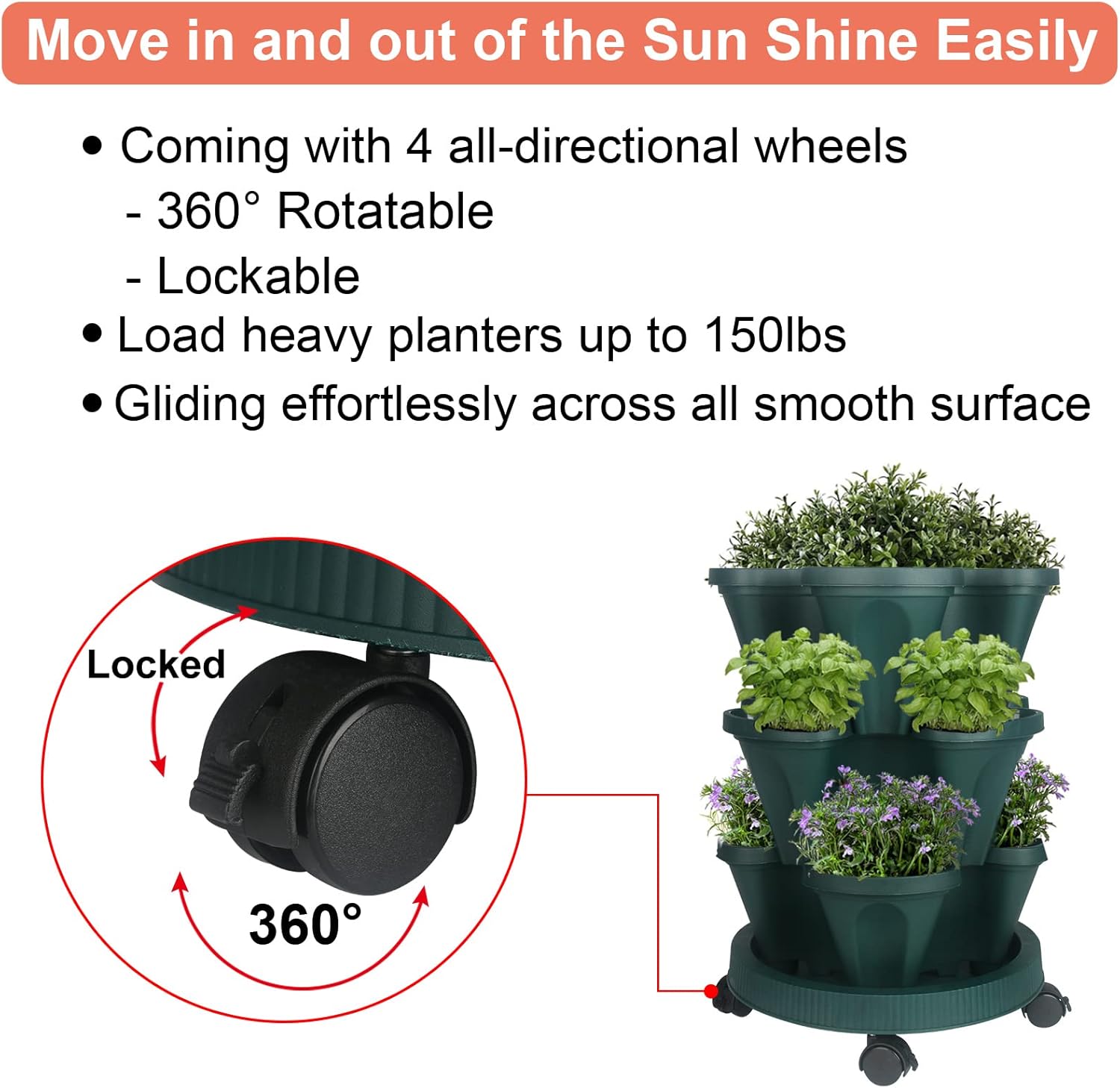 Vertical Planter 3 Tier Stackable Planters Garden Planters Strawberry Herb Flower and Vegetable Planter Indoor Outdoor Gardening Pots with Removable Wheels and Tools 2-Pack