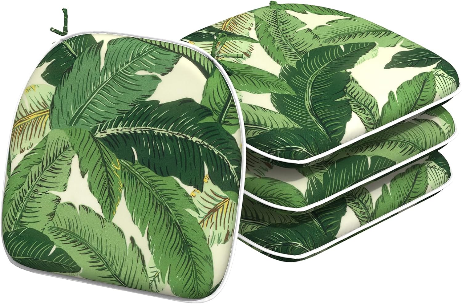 Indoor/Outdoor Chair Cushions 16x17 Inch, Patio Chair Cushions with Ties, All Weather Seat Cushions for Patio Furniture Home Garden Chair Use, Set of 4, Swaying Palms Green