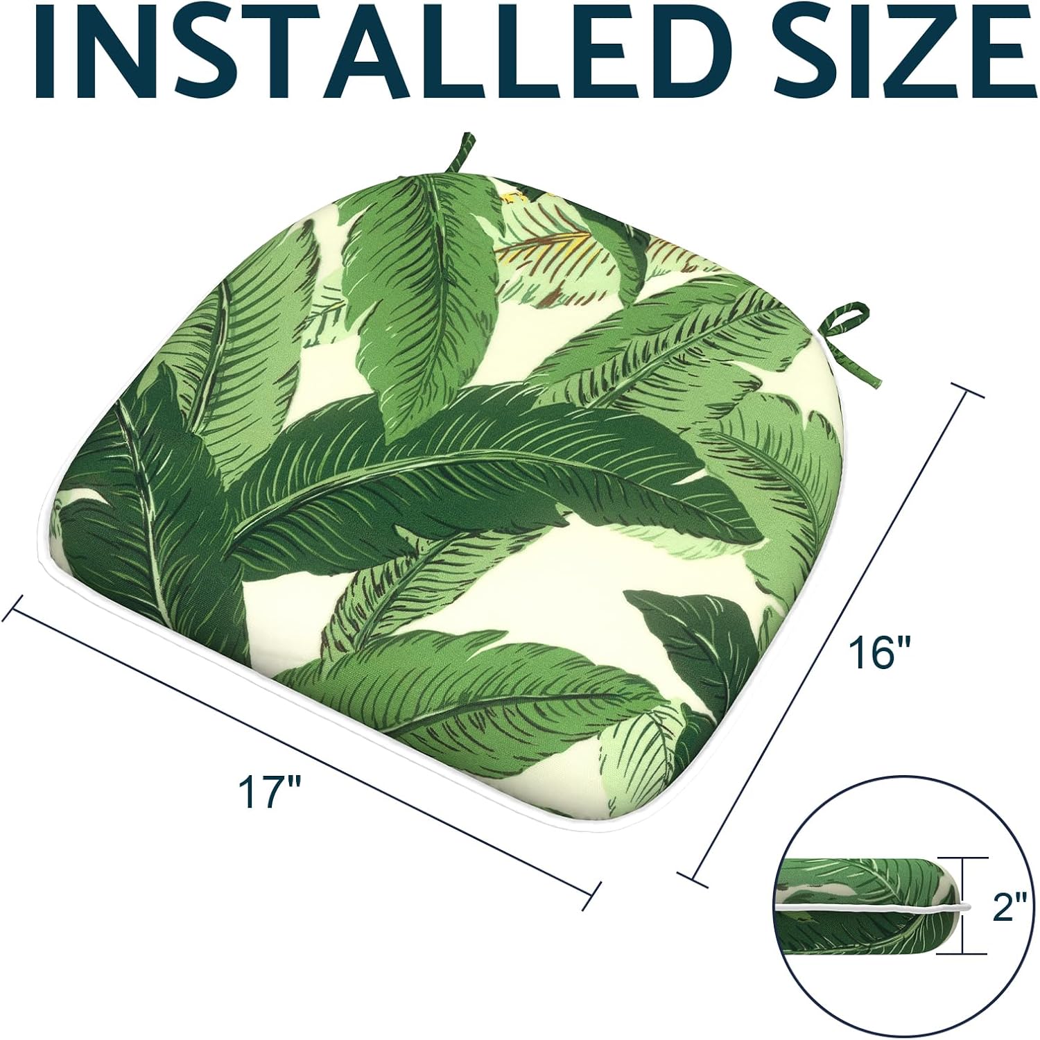 Indoor/Outdoor Chair Cushions 16x17 Inch, Patio Chair Cushions with Ties, All Weather Seat Cushions for Patio Furniture Home Garden Chair Use, Set of 2, Swaying Palms Green