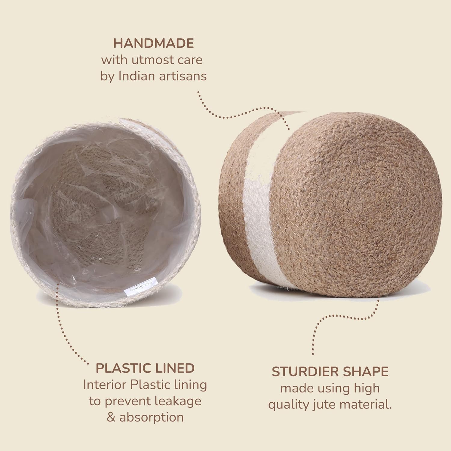 - ECO-FRIENDLY AND NATURAL- Hand woven with 100% natural jute rope, these plant pot covers are an Eco-Friendly and sustainable alternative to plastic pot covers. Artisans in India hand craft these to perfection.
