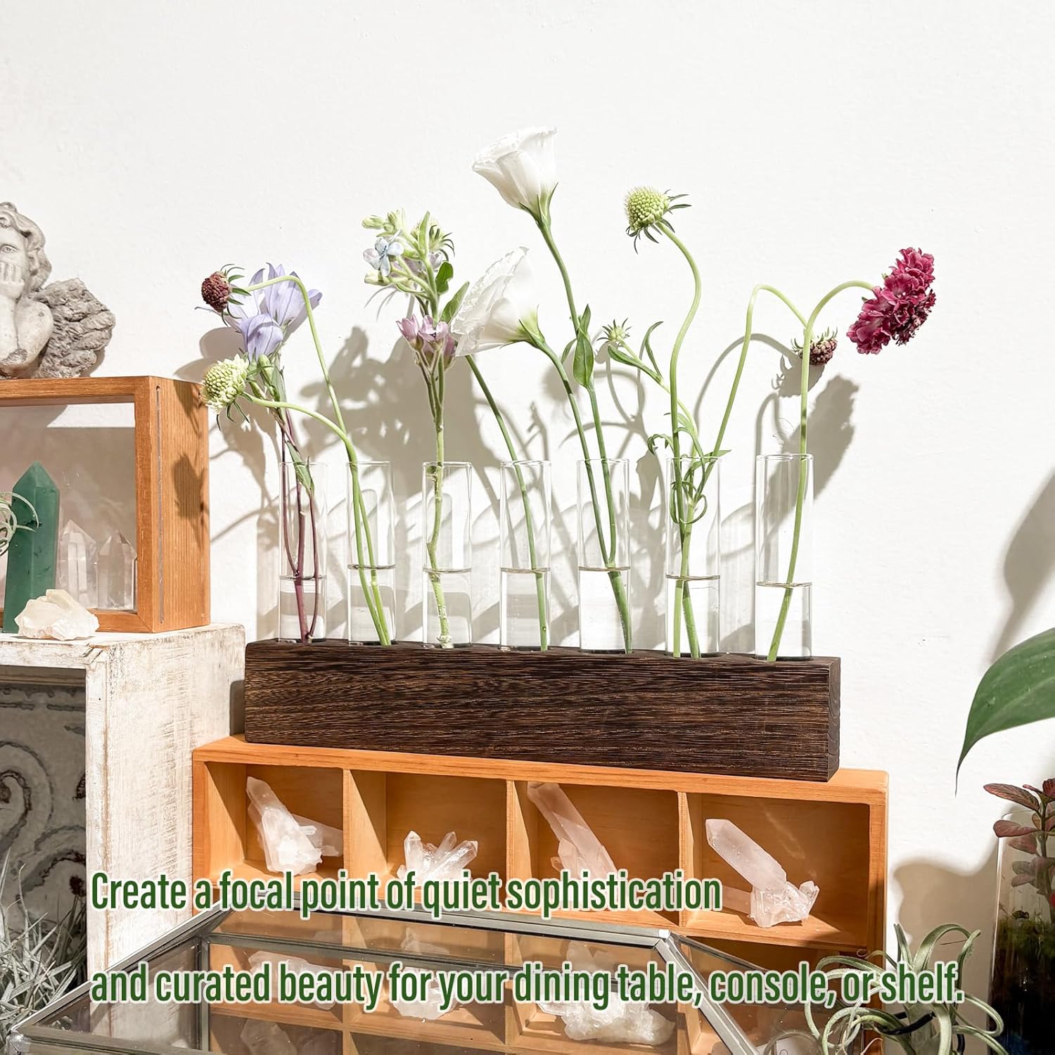 - 【Decorate Your Home】: 7 test tubes in Wooden Stand Propagation Station making it suitable for the living room, dining room, kitchen, office, corridor, or windowsill. It brings the outdoors into your home, adding warmth and life to your space. Perfect for hydroponic houseplants, indoor plants, and water-rooted plants like Pothos and Spider plants, adds a lovely touch to any room. Ideal for use on windowsills, desktops, shelves, or bedside tables, it’s also a great gift idea for plant lovers.