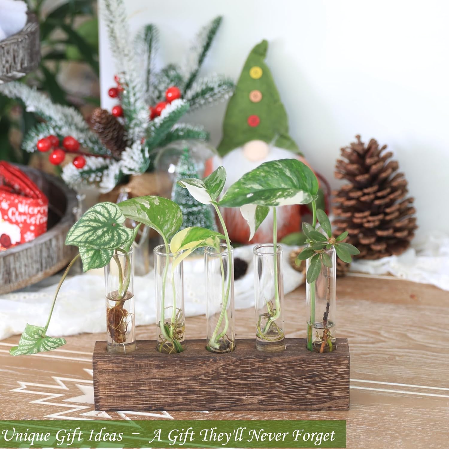 - โฅ Desktop Plant Propagation Station: Propagation station features a retro wooden stand with long test tubes, creating a vintage aesthetic perfect for hydroponic plant cuttings. Test tubes allow ample room for roots to grow, ensuring your plants thrive with proper water levels. Ideal for indoor gardening, this beautiful decor piece enhances any desk and serves as a hydroponic plant cuttings. Plants Starter Station for propagating houseplants babies, making it a must-have for plant lovers.