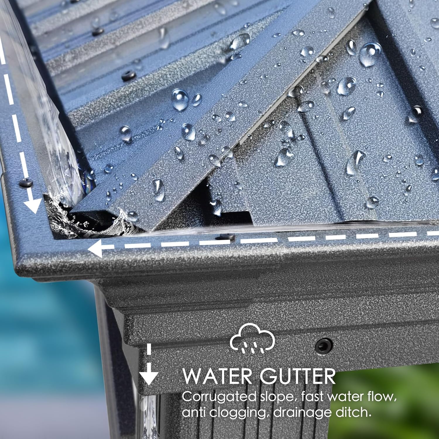 - ✅Metal Canopy/Roof and Gutter Design - The metal canopy of this gazebo ensures longevity and durability. Its roof, made of sheet metal, boasts a robust 29-gauge thickness, which is thicker than most gazebos on the market. its water gutter system ensures that rainwater is efficiently directed away from the edges of the frame and poles.