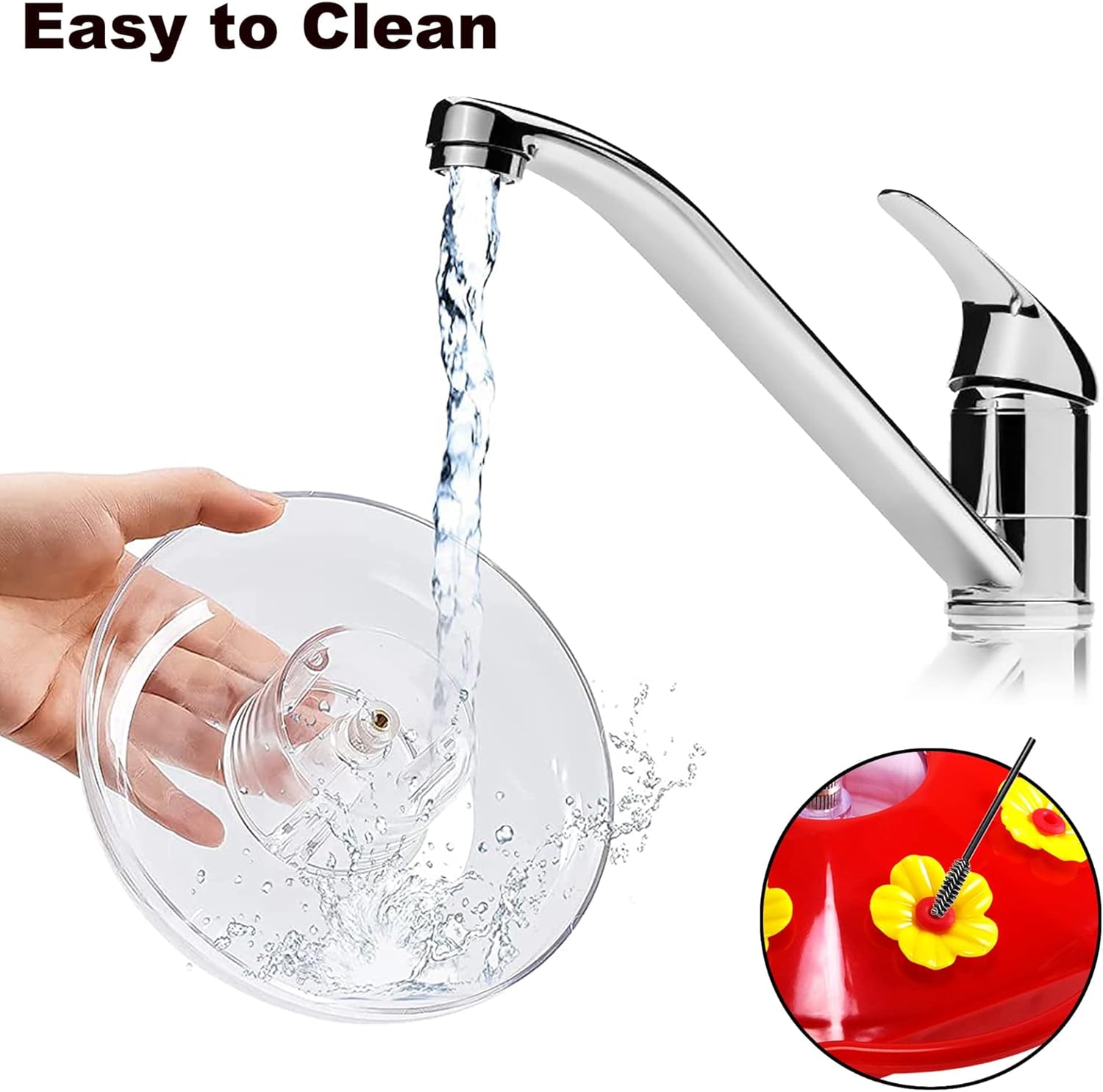 - ππ¨π₯ππππ & πππ¦π¬ π πππ‘π§ππ‘ππ‘ππ -- NO tools required, easy to assemble. The feeder cover and body are made of high-quality plastic. You can monitor the nectar level through the clear water reservoir to know when to refill it. Wash the feeder by hand, NOT dishwasher safe.