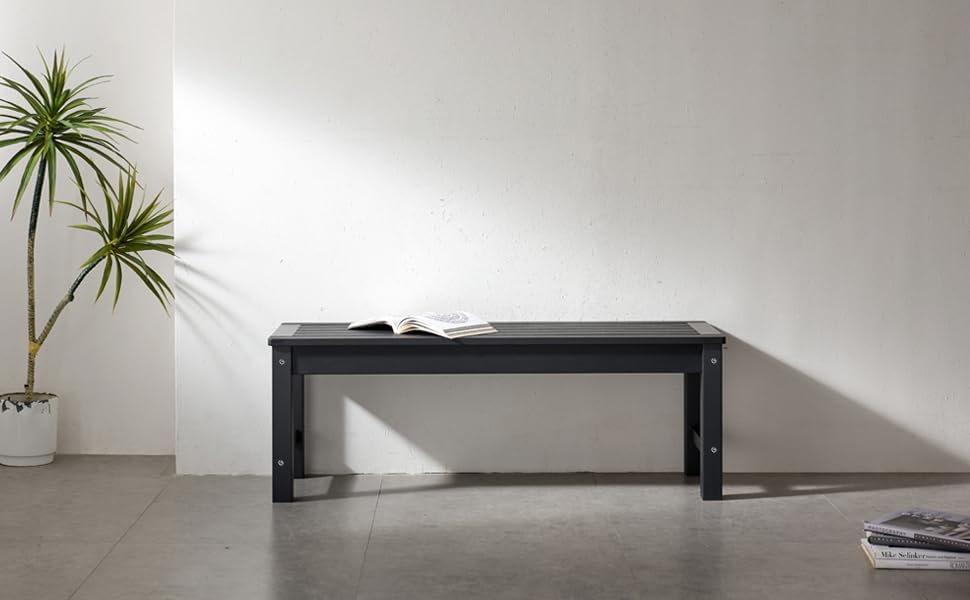 - Easy to Assemble- The most simplified installation process, you only need to screw 4 identical screws into the pre-drilled holes. The park backless bench is heavy. It is recommended that two people install it together.