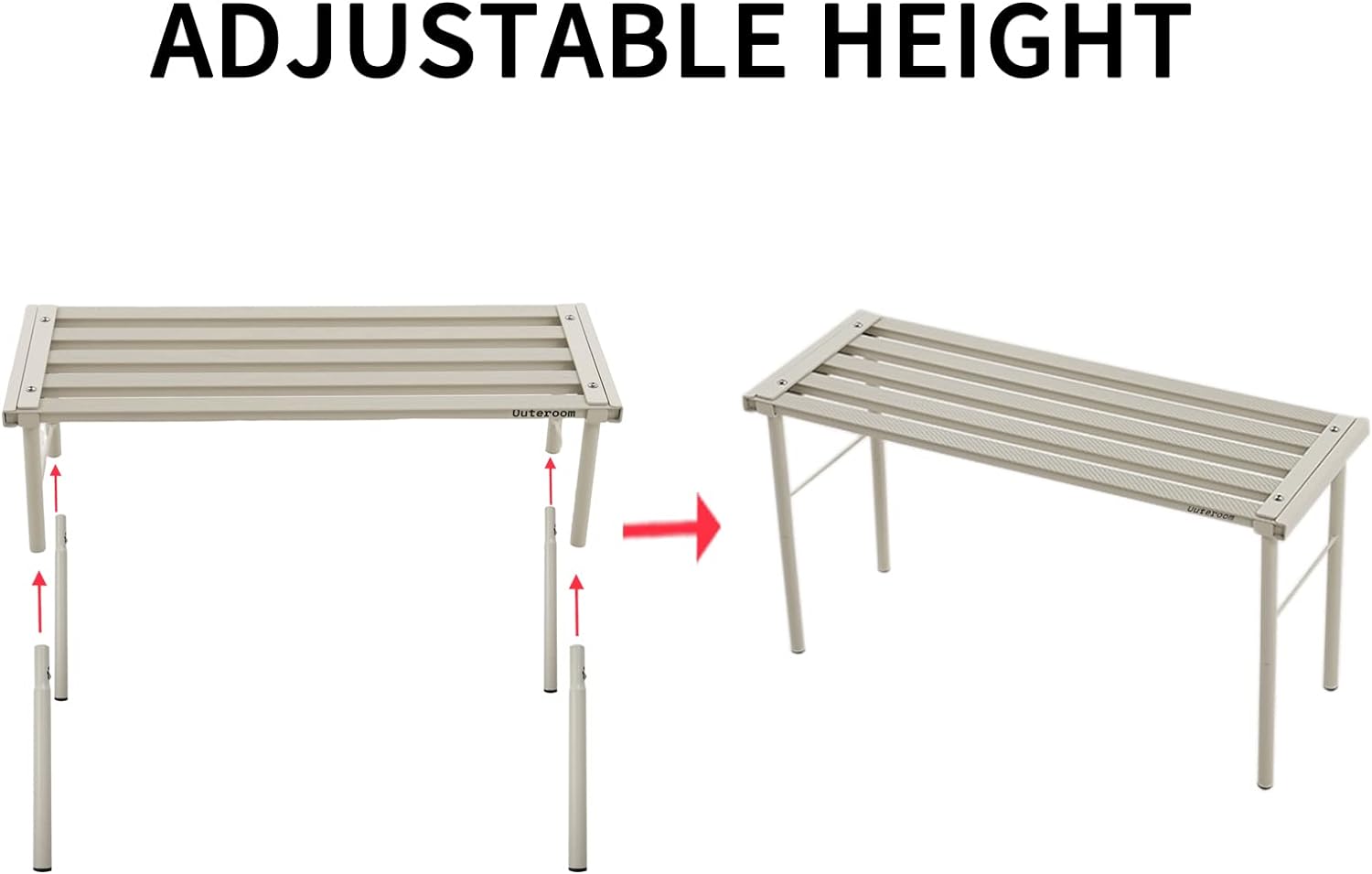 - Adjustable height: With 2 height options to suit a variety of outdoor scenarios, you can quickly and easily attach the sturdy telescopic table legs to raise the height of the plants display rack from 6.9 inches in the first height option to the second 13.1 height in inches.