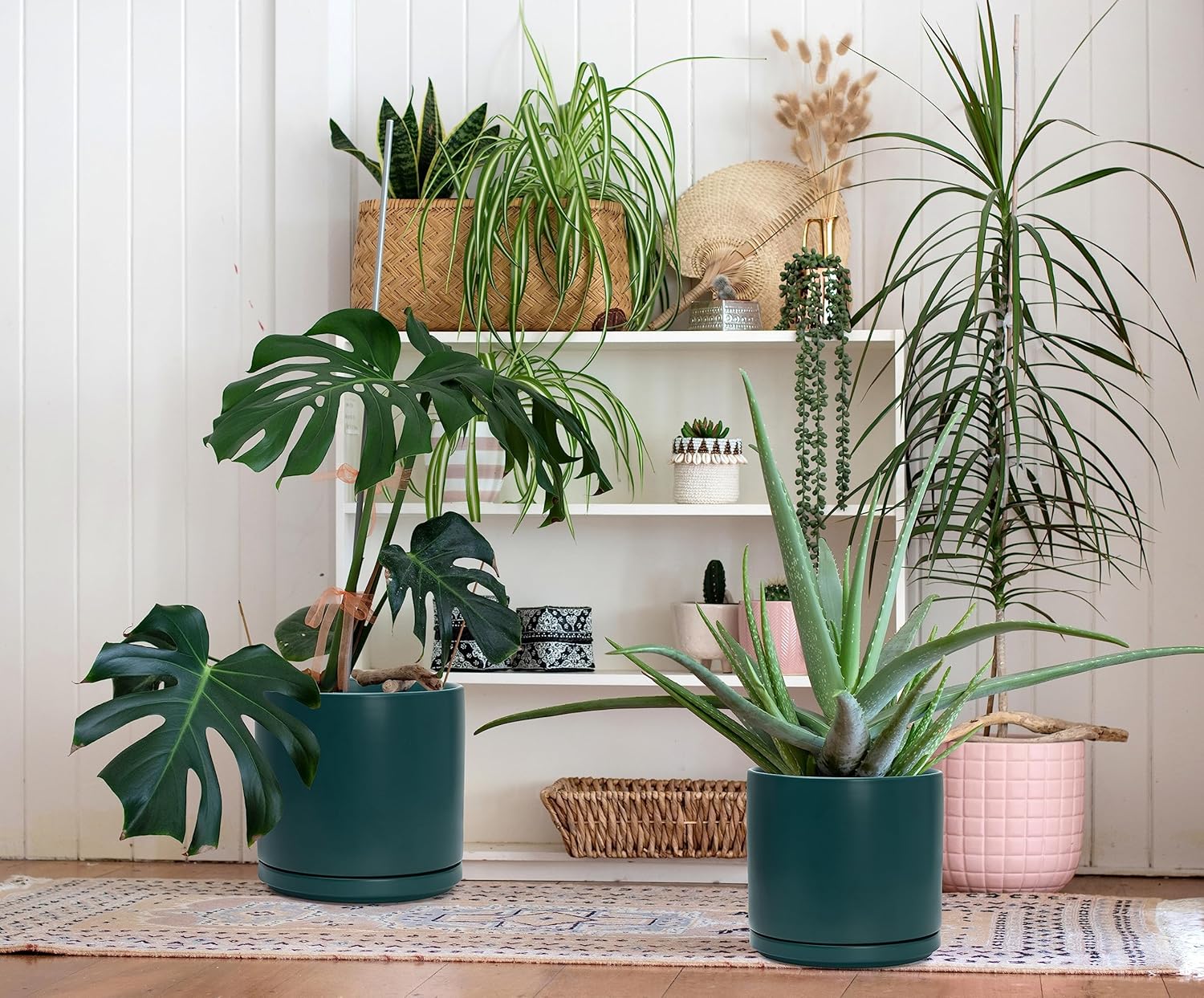 - Drainage holes and detachable/perfectly fitting ceramic saucers included.