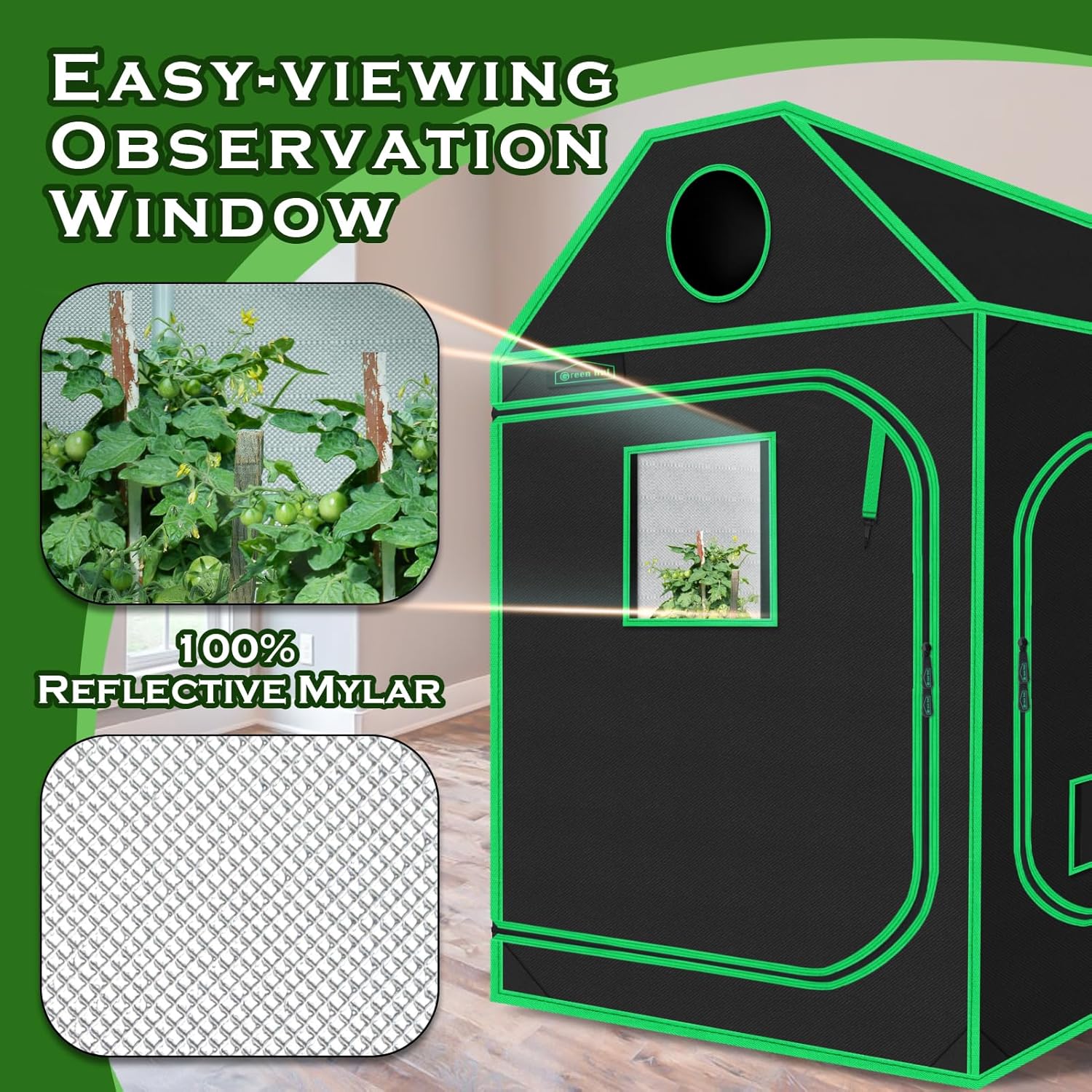 5x5 Growing Tent, 60"x60"x72" Roof Cube Grow Tent Plant Grow Tent, Indoor Growing Tent with Observation Windows, Lightproof Roof Cube Tent with Floor Tray, Mylar Hydroponic Tent