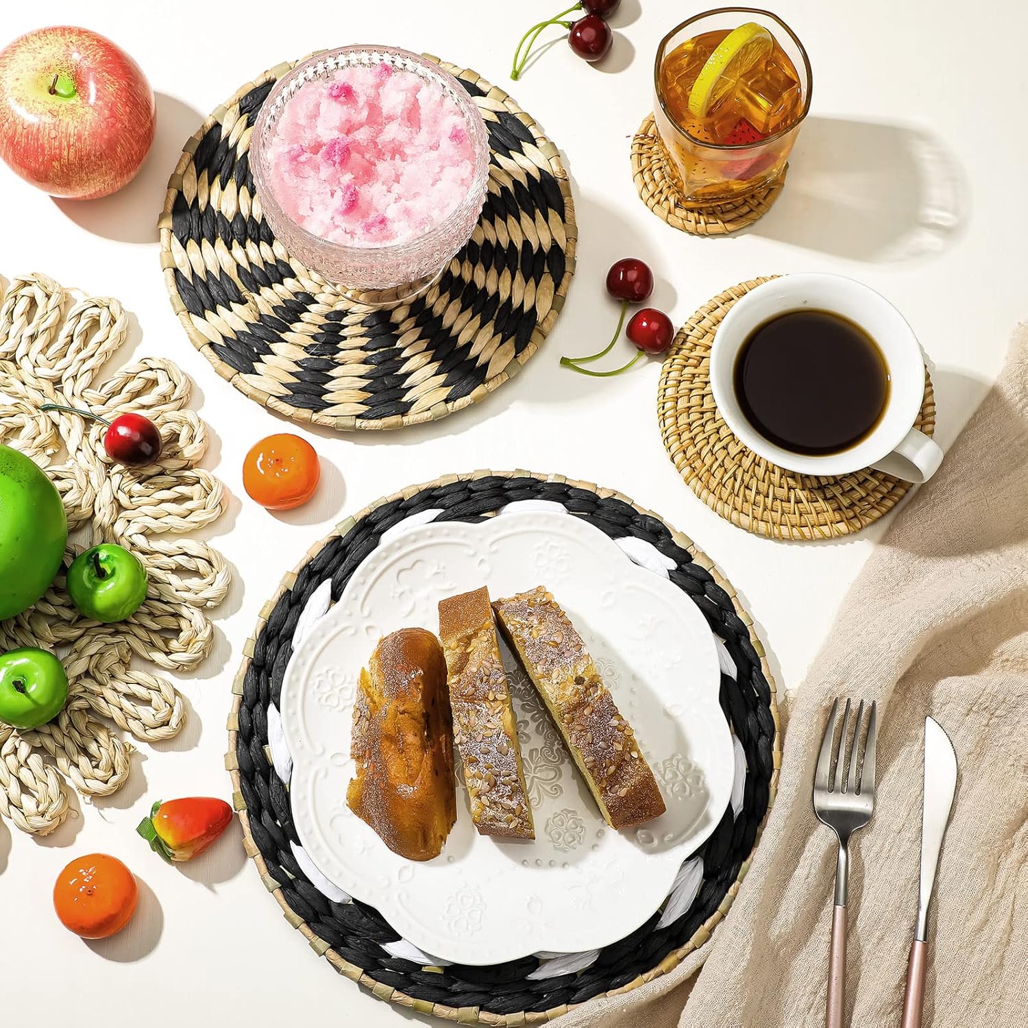 - Wide Range of Applications: boho basket wall decor set as placemats, or as decorative baskets to store toys and accessories, the rustic basket wall art is suitable for many occasions, such as hotels, restaurants, living rooms, bedrooms, schools, stores, offices, dorms, shops, spring, summer and more, bringing you an elegant and classic feeling