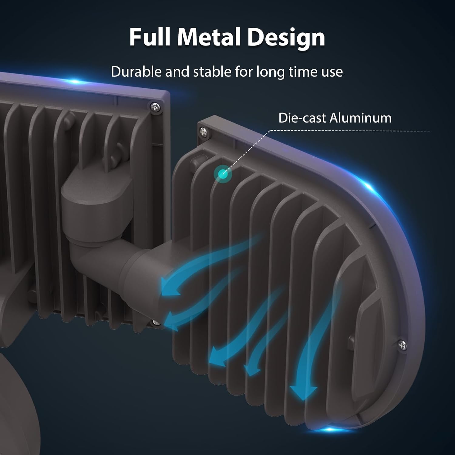 - Long Time Use: Made of resilient die-cast aluminum and designed with a fin-shaped back cover, the LED Security Lights Motion Sensor efficiently dissipates the heat and have a greatly prolonged lifespan. Much more stable and reliable than those made of plastic.