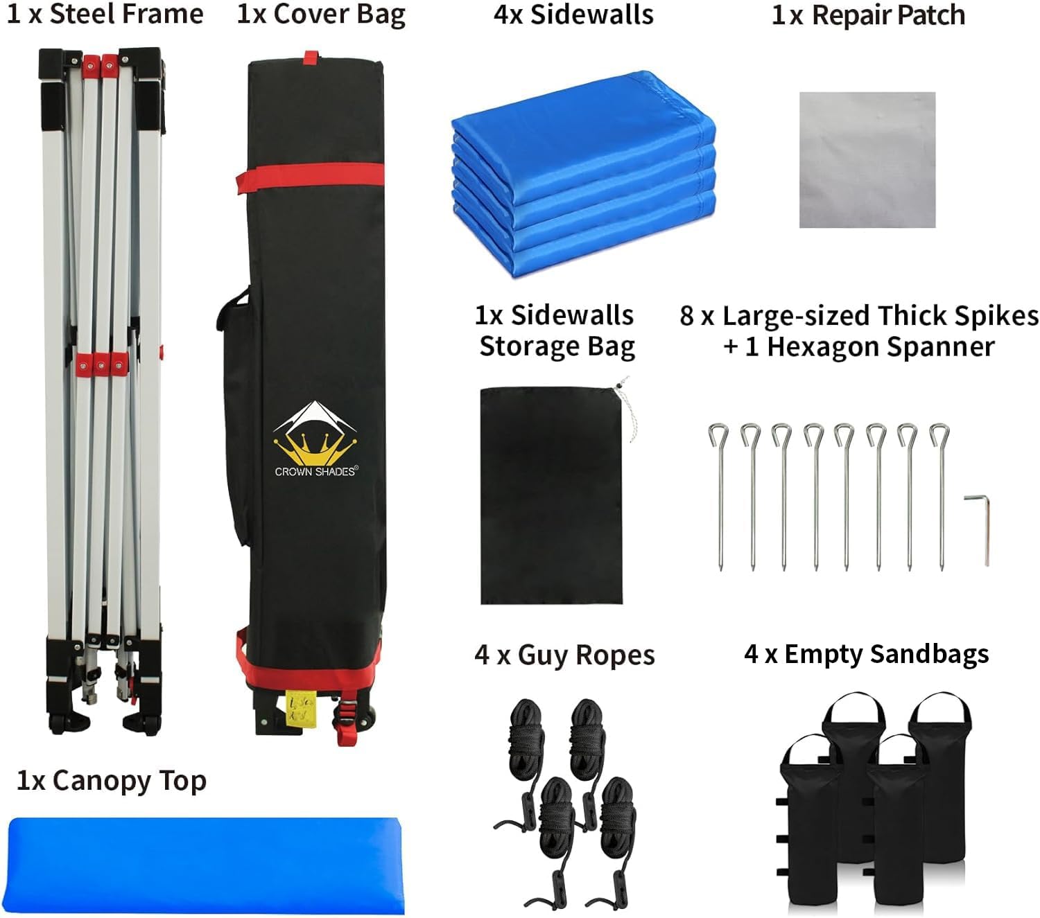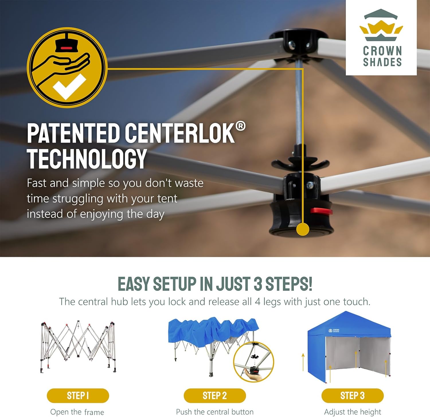 CROWN SHADES 10X10 Comercial Instant Canopy Pop Up Tent with Center Lock (10x10 with 4 Sidewalls, Blue)