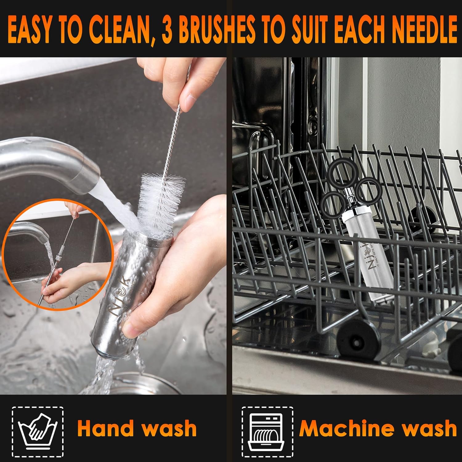 - What You Get: 1x 2-oz large capacity flavour injector barrel, 3 needles, 1 big cleaning brush and 2 small brushes to match the size of each injection needle. Beautiful package, perfect as gift to your loved ones, friendly customer service, and an unconditional return policy.