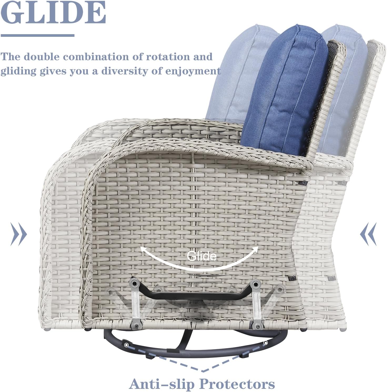 - 1.Patio Furniture Set Details: The 5-piece patio furniture set is the best choice for your patio, backyard or other outdoor space for your chatting needs. This 5 pieces patio furniture set includes a total of 2 swivel rocker chairs, 1 2-seater loveseat, 1 glass coffee table and 1 glass side table with removable and washable cushions.
