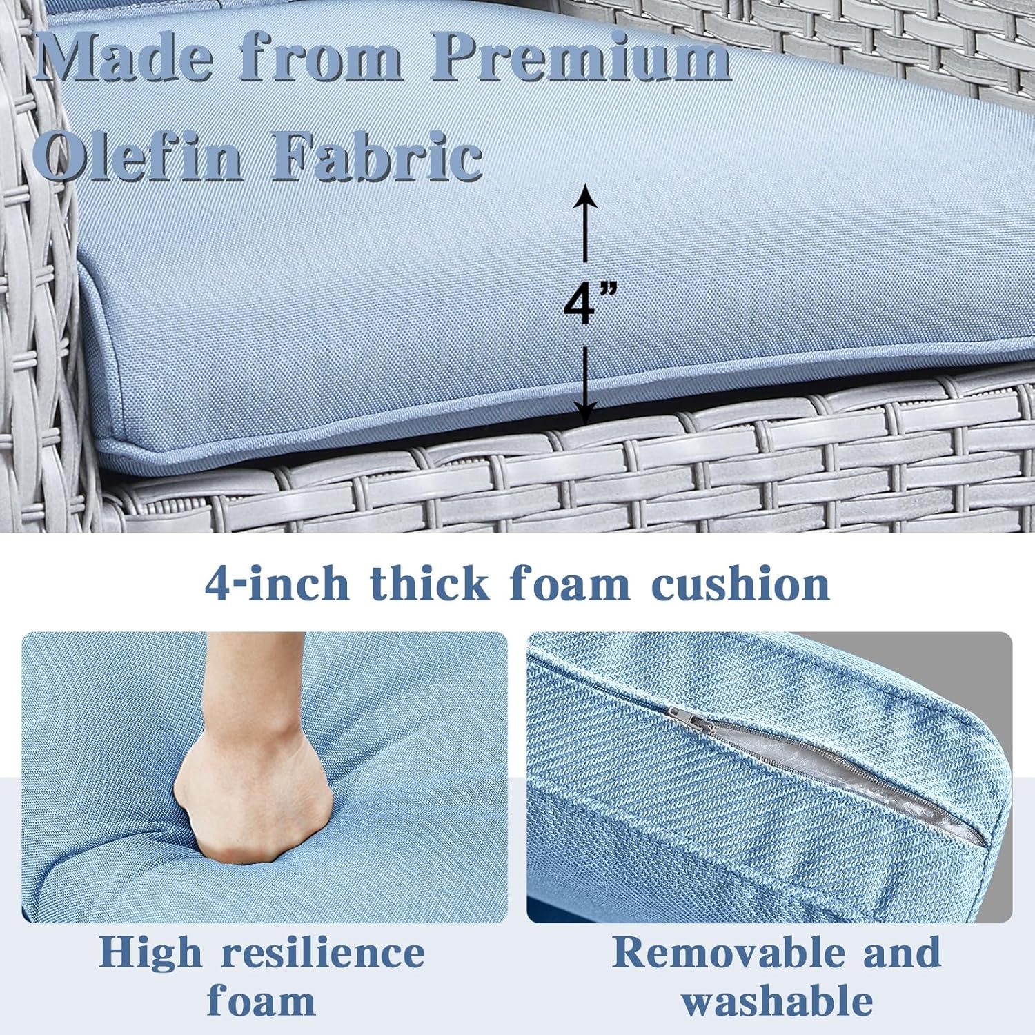 - Color : Light Grey Wicker / Baby Blue Cushion