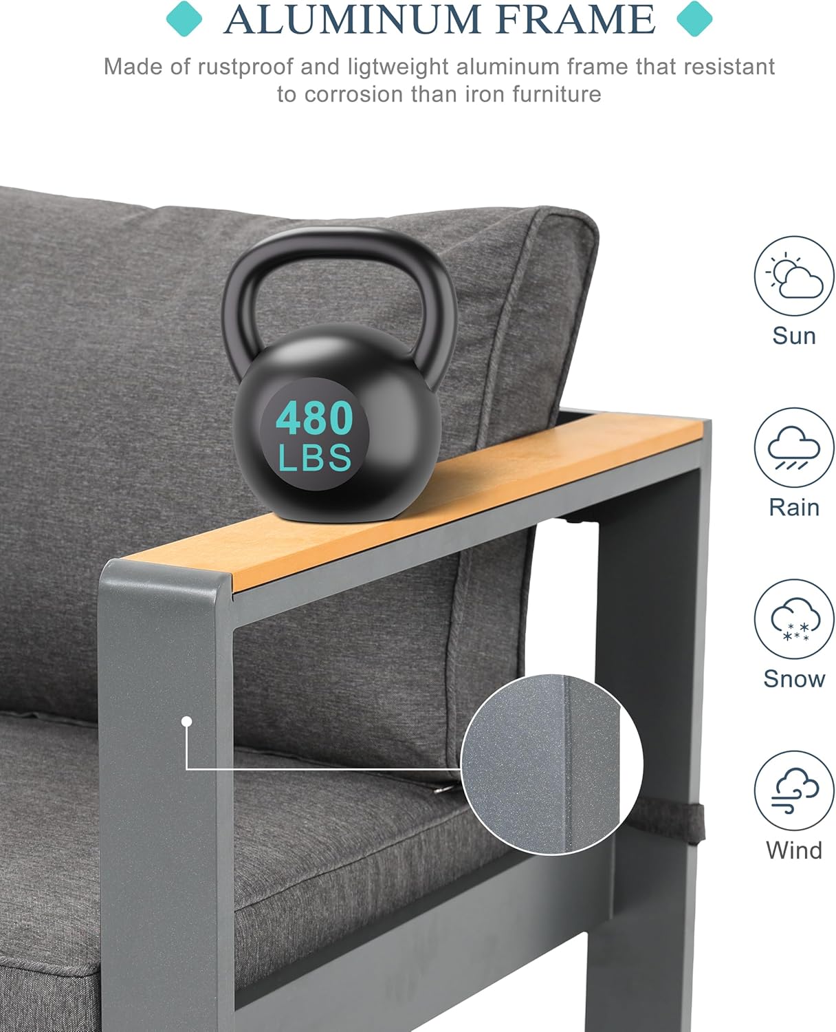 - Effortless Maintenance: Engineered with rust, heat, and moisture-resistant aluminum and a protective finish, this patio loveseat requires only a quick wipe with a damp cloth—freeing your time for relaxation, not upkeep