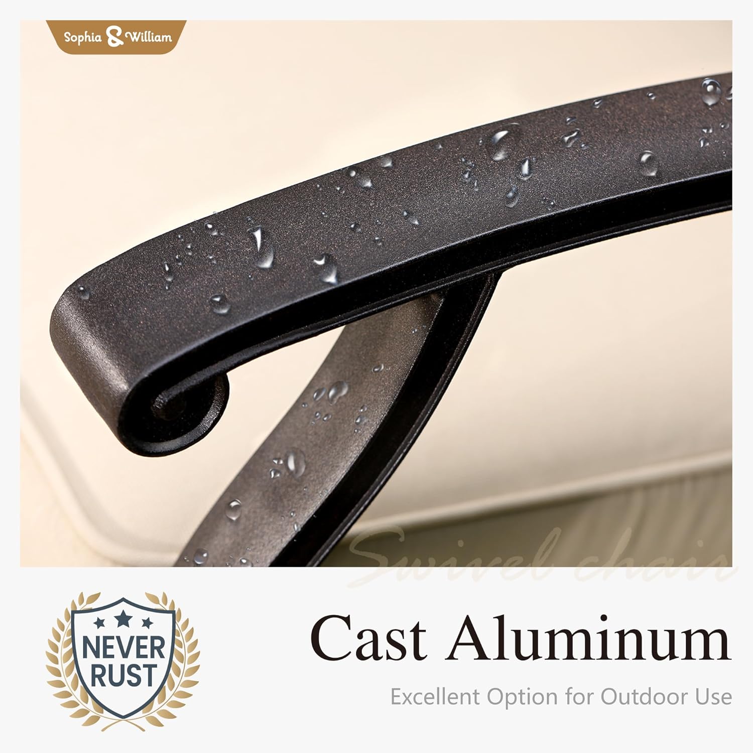 - Premium Material: The patio rectangular table and swivel rocking chairs are made of highquality aluminum and aluminum alloy using traditional cast aluminum technology, this patio dining set is both beautiful and elegant. The natural alumina protective film on the surface of cast aluminum provides excellent rust and water resistance, while the special powdercoating process further strengthens its performance