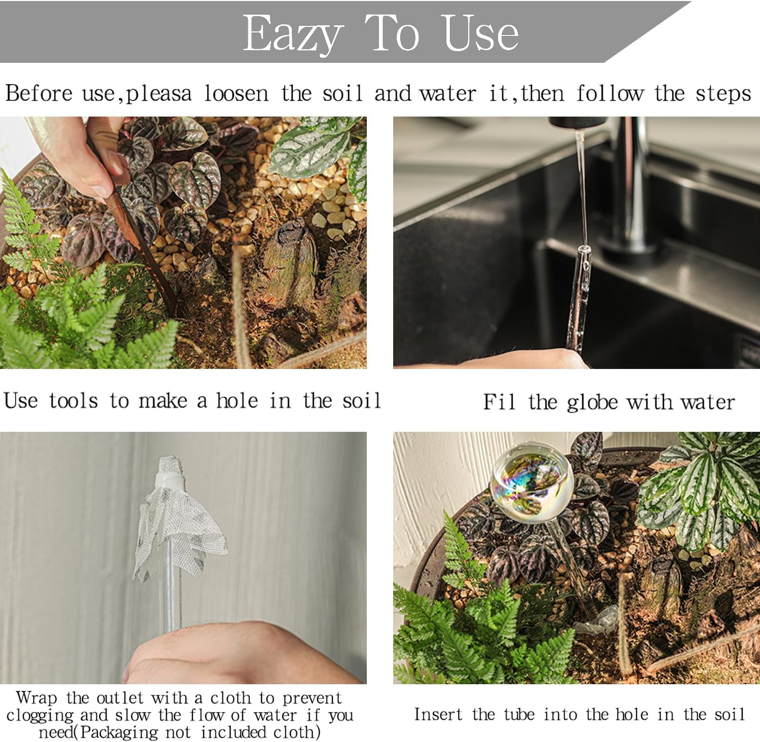 - 【Easy to use 】All you need to do is fill the watering globe outdoor and indoor bulbs and push the glass straw into soil. The water will slowly be dispensed and will continue automatically watering your plants when the soil is dry.