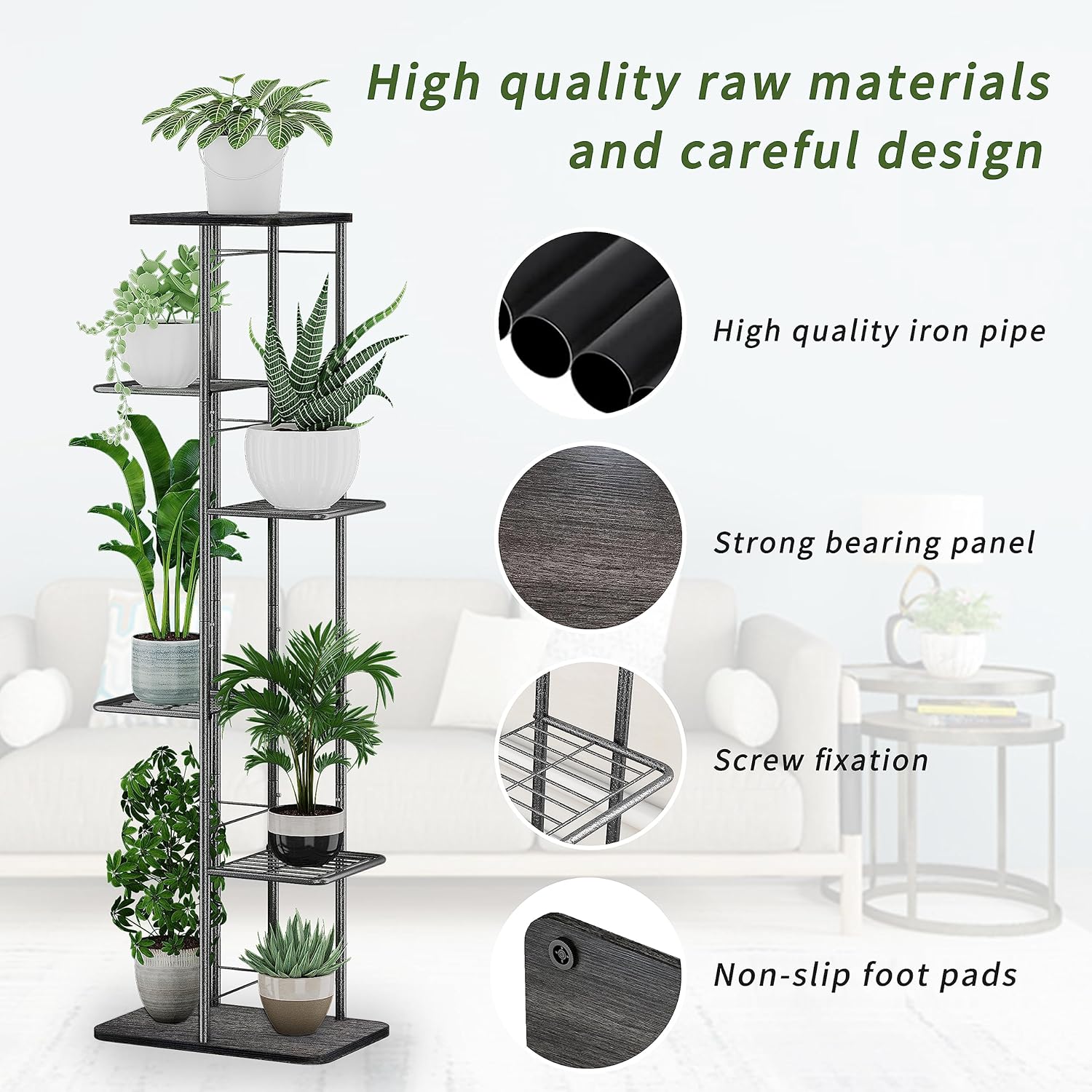 Simple Trending Plant Stand Shelf Indoor Outdoor Waterproof, 6-Tier 7 Potted Heavy Duty Metal Tall Flower Holder for Multiple Corner Display
