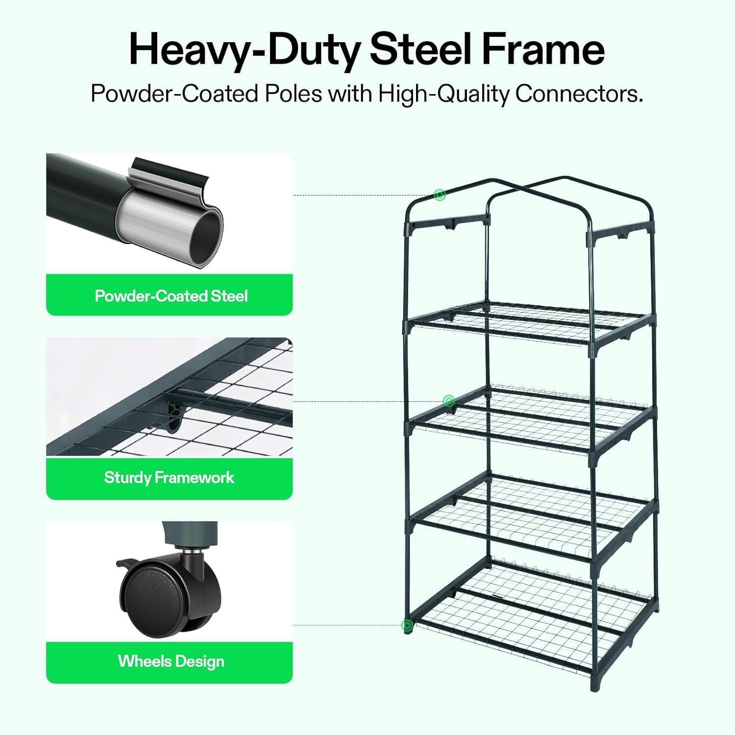 - Lightweight and Space Saving: Comes with 4 deep shelves for seedling starting trays or pots, saving space on your balcony and giving you the convenience to start seedlings indoors before moving them outdoors
