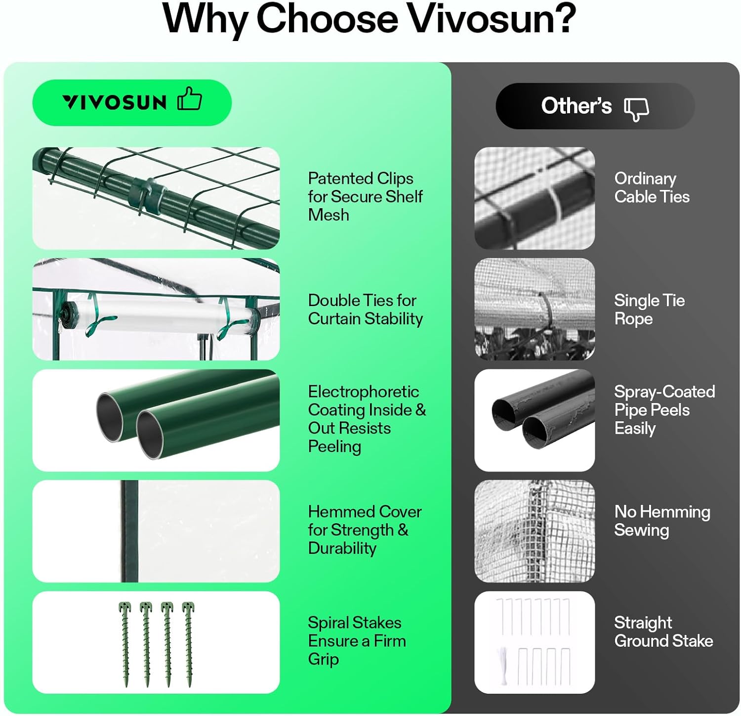 - Sturdy & Durable Framework: Supported by a powder-coated heavy-duty steel frame, the green house is very sturdy and firm; Bury the base into ground helps you strengthen its stability and safety