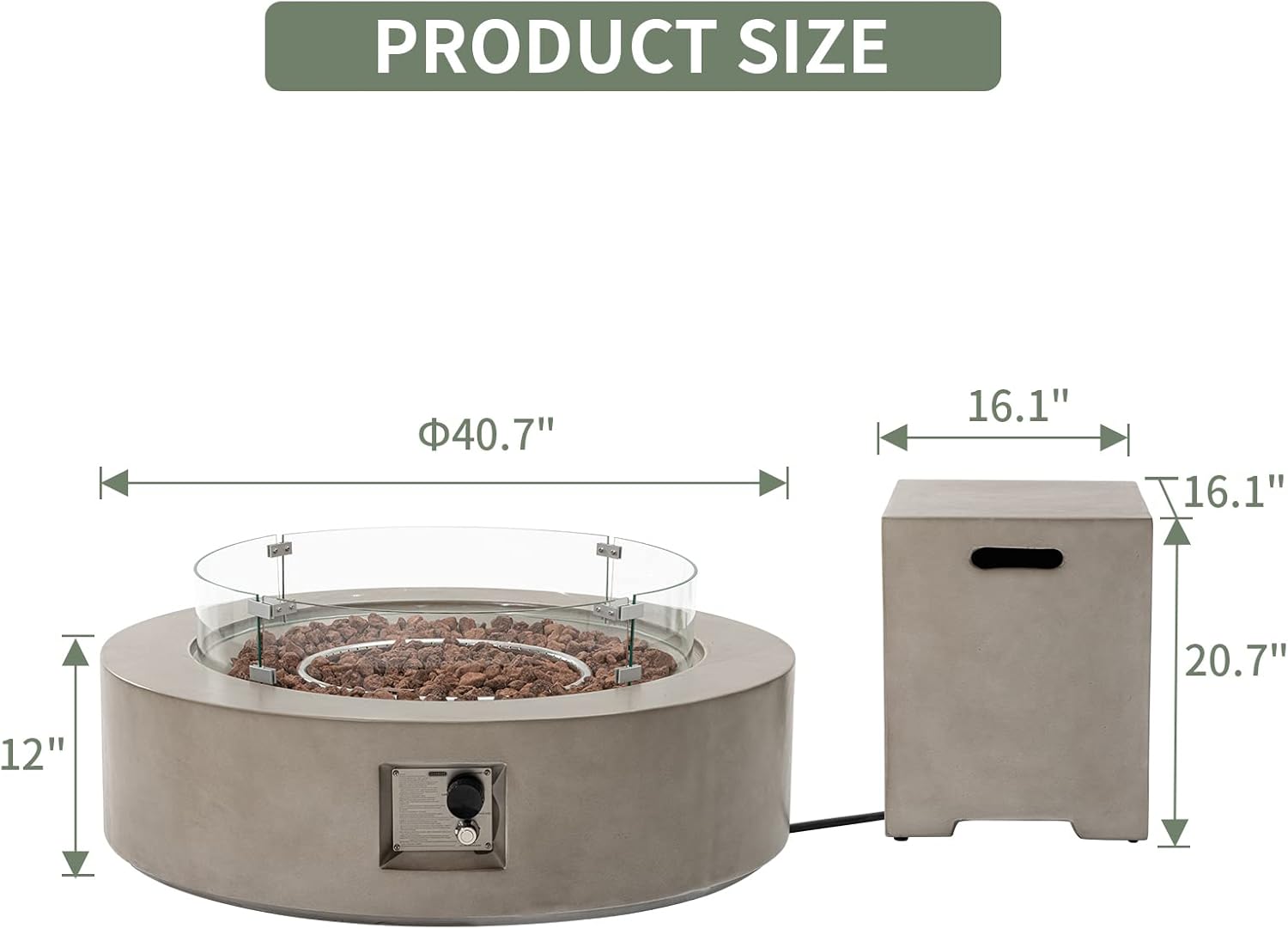 COSIEST 2-Piece Outdoor Propane Firepit Table Set w Tank Table, CSA Certified 42" Fire Table CSA Certified, 50,000 BTU w Gray Round Base,Wind Guard and 16 inches Tank Side Table 20lb for Garden,Pool