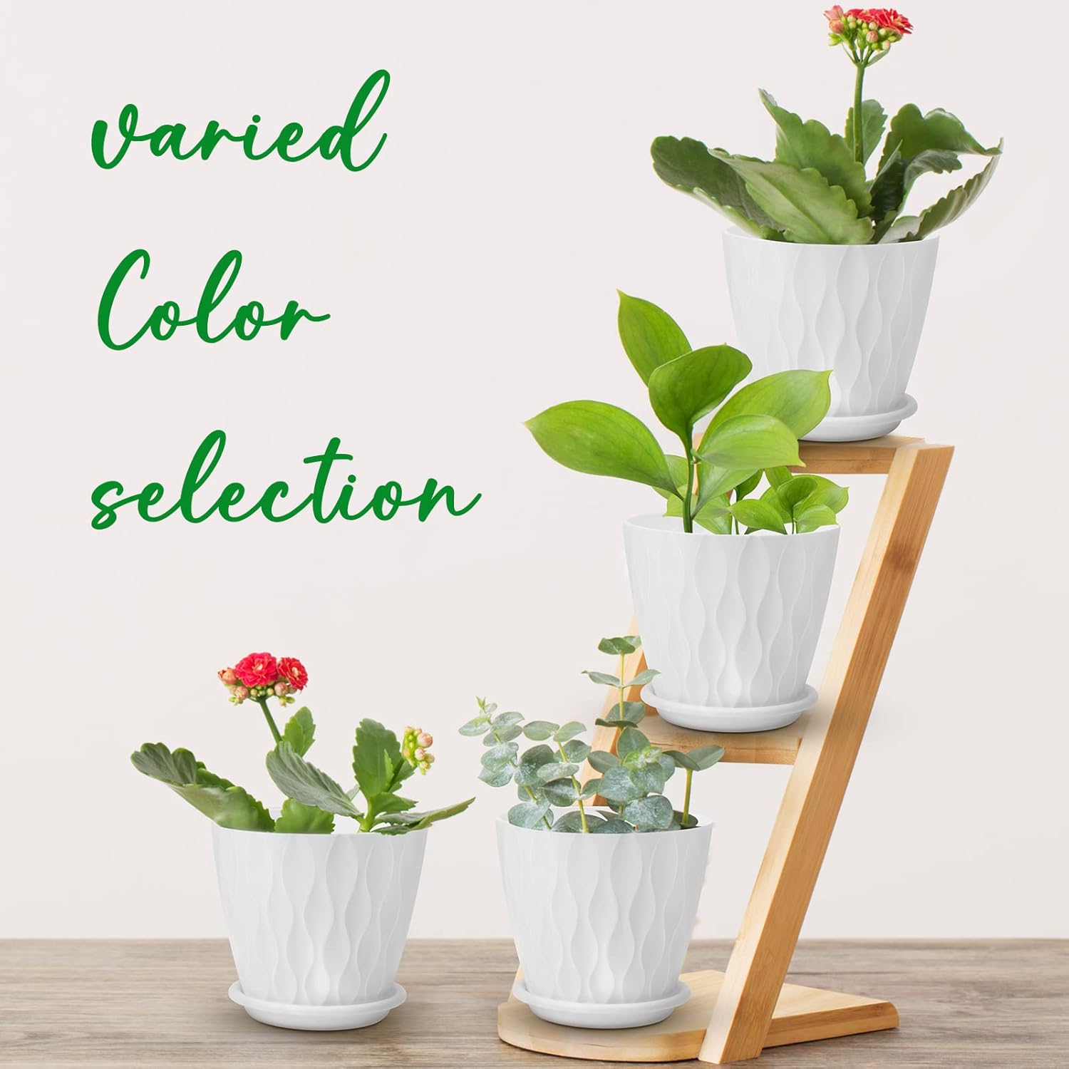 6 inch Plant Pots, 5 Pack Flower Pots Outdoor Indoor, Planters with Drainage Hole and Tray Saucer(White