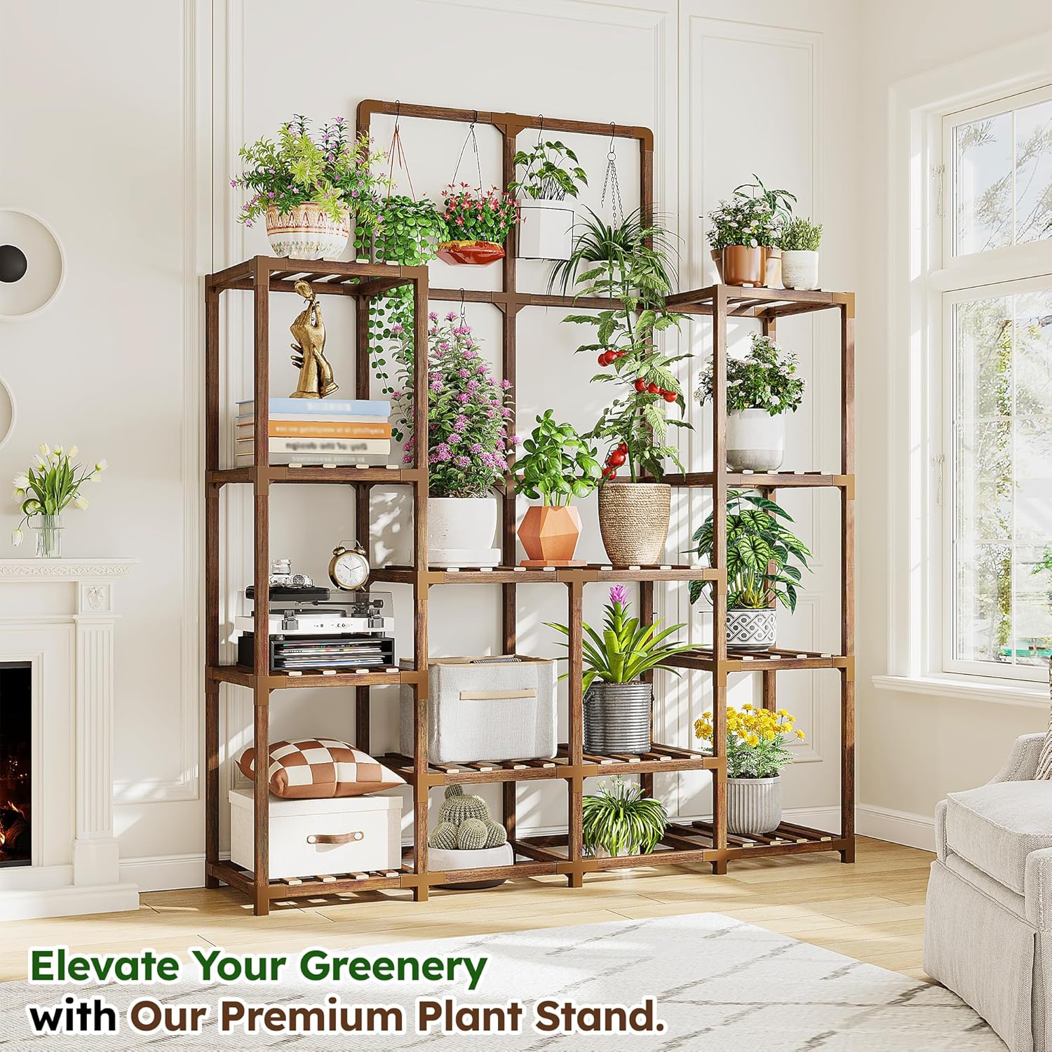 EnHomee Plant Stand Indoor Wood Plant Stand Outdoor Tiered Plant Shelf for Multiple 16-21 Potted Plants for Living Room Patio Balcony Yard Garden 44.9" W x 11.8" D x 62.2" H