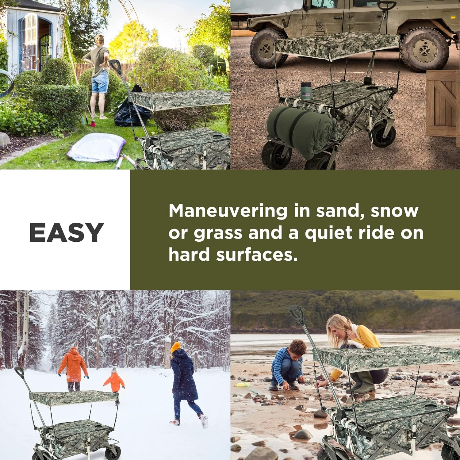 Creative Outdoor Push Pull Stroller Wagon, Beach Hauler XXL Deluxe with Canopy, Collapsible and Portable Heavy Duty Folding Cart, Supports up to 200lbs Weight Capacity, Giant 10" Wheels