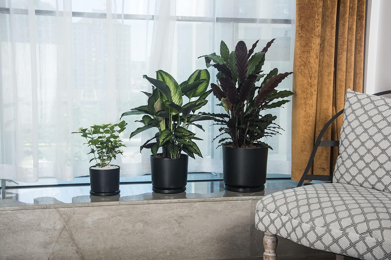 Ekirlin 9 inch Plant Pots,Ceramic Flower Planters Indoor,Modern Succulents Containers with Drain Hole Saucer,Decorate Home,Office & Outdoor (Black)