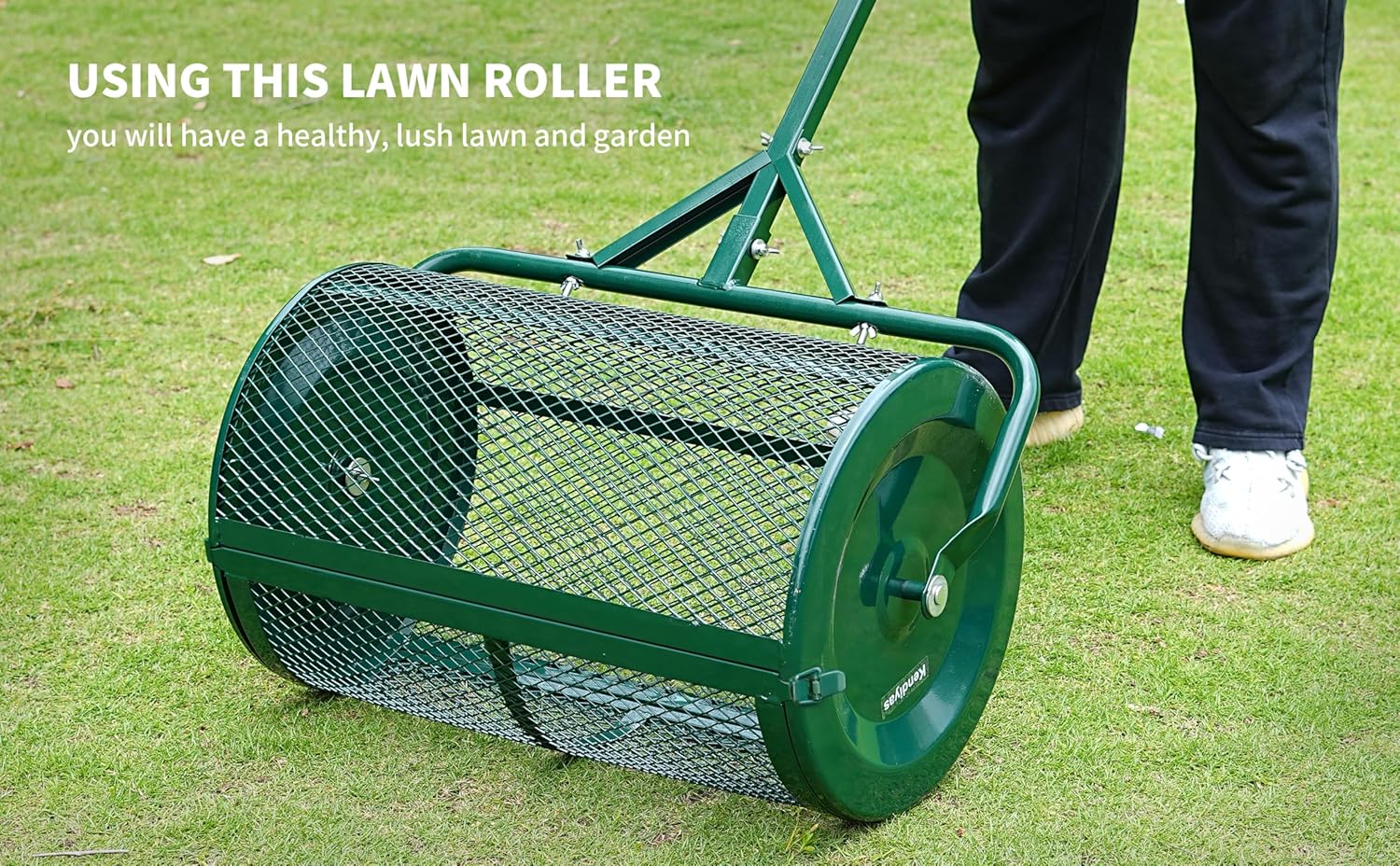 - Multifunctional Spreader: Our peat moss spreader effectively breaks up clumpy materials while tumbling, ensuring an even flow and spread of products on lawns or gardens. The basket design allows for convenient loading of different types of fertilizers and mulch, making it suitable for everyone to use. Thanks to its durable and lightweight construction, the spreader can be easily rolled on various surfaces.