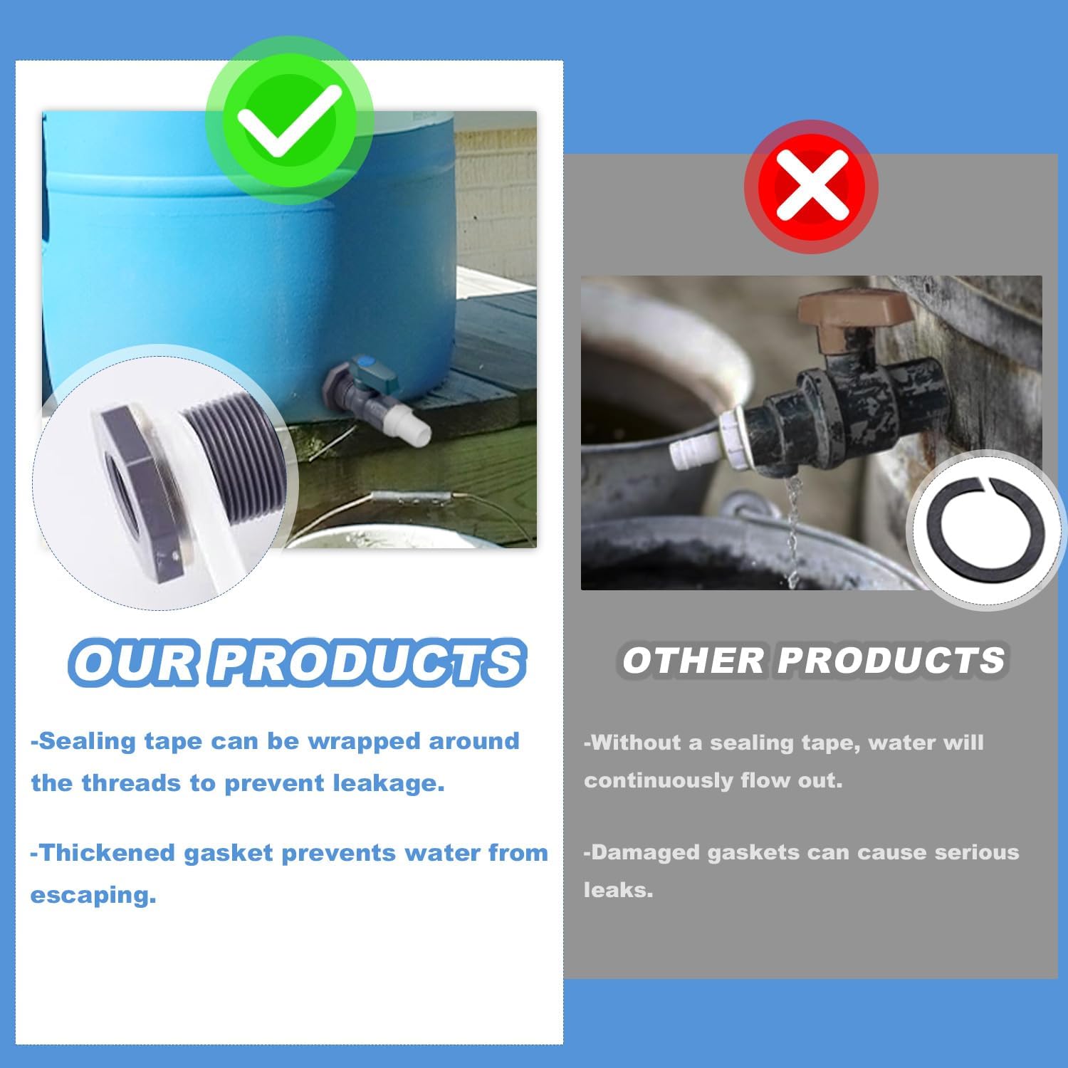 - Leak-proof Design: The bulkhead connector features a left-hand thread and is meticulously crafted to ensure a tight connection. It also comes with thread sealing tape for a tight seal, effectively preventing leaks. It's easy to install and safer to use.
