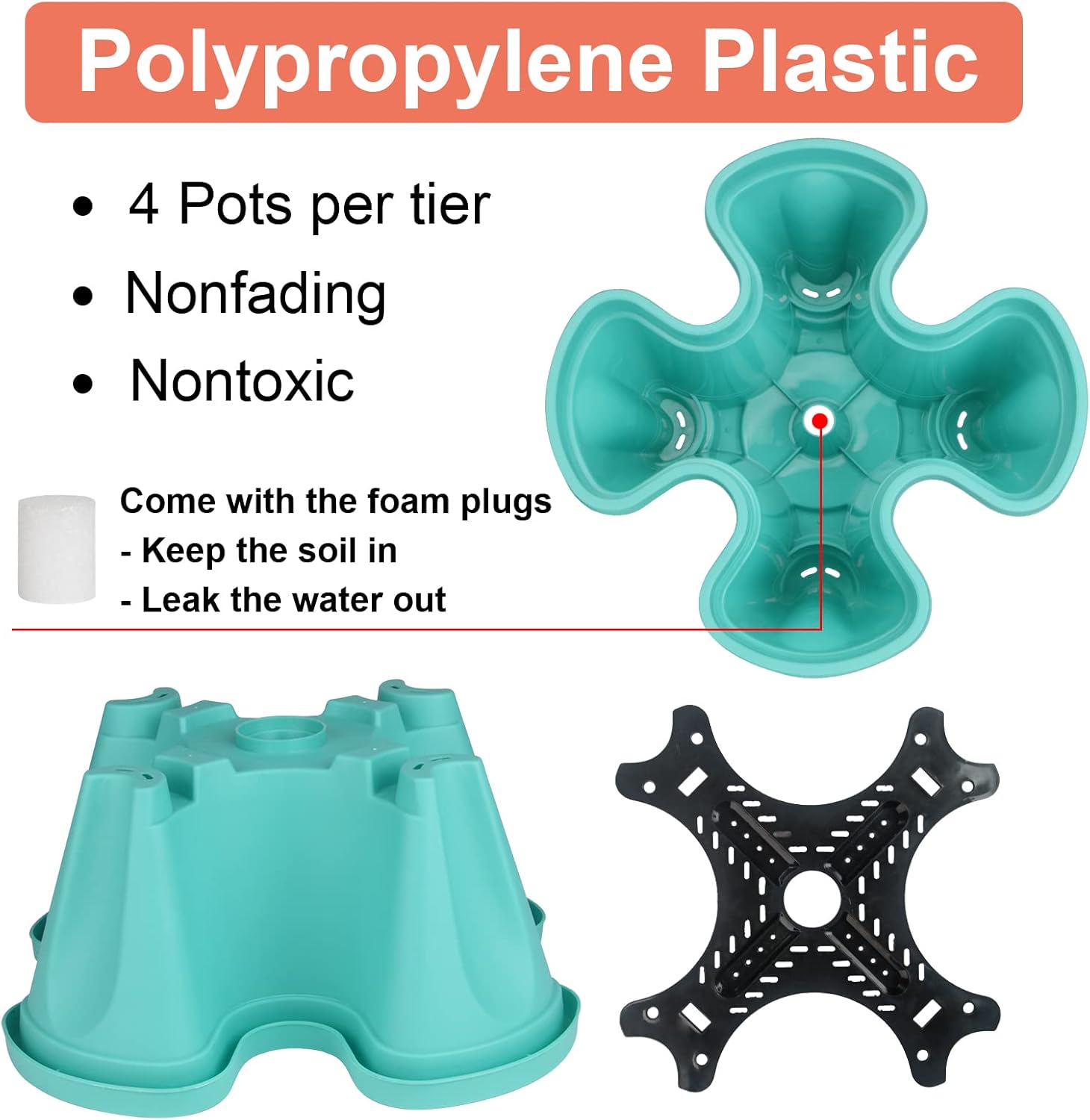 DUNCHATY Stackable Planter, Vertical Garden Planter with Wheels and Tools, Self Watering Strawberry Planter Indoor/Outdoor 4 Tier Herb Planter Pots for Growing Vegetables and Succulents, Teal