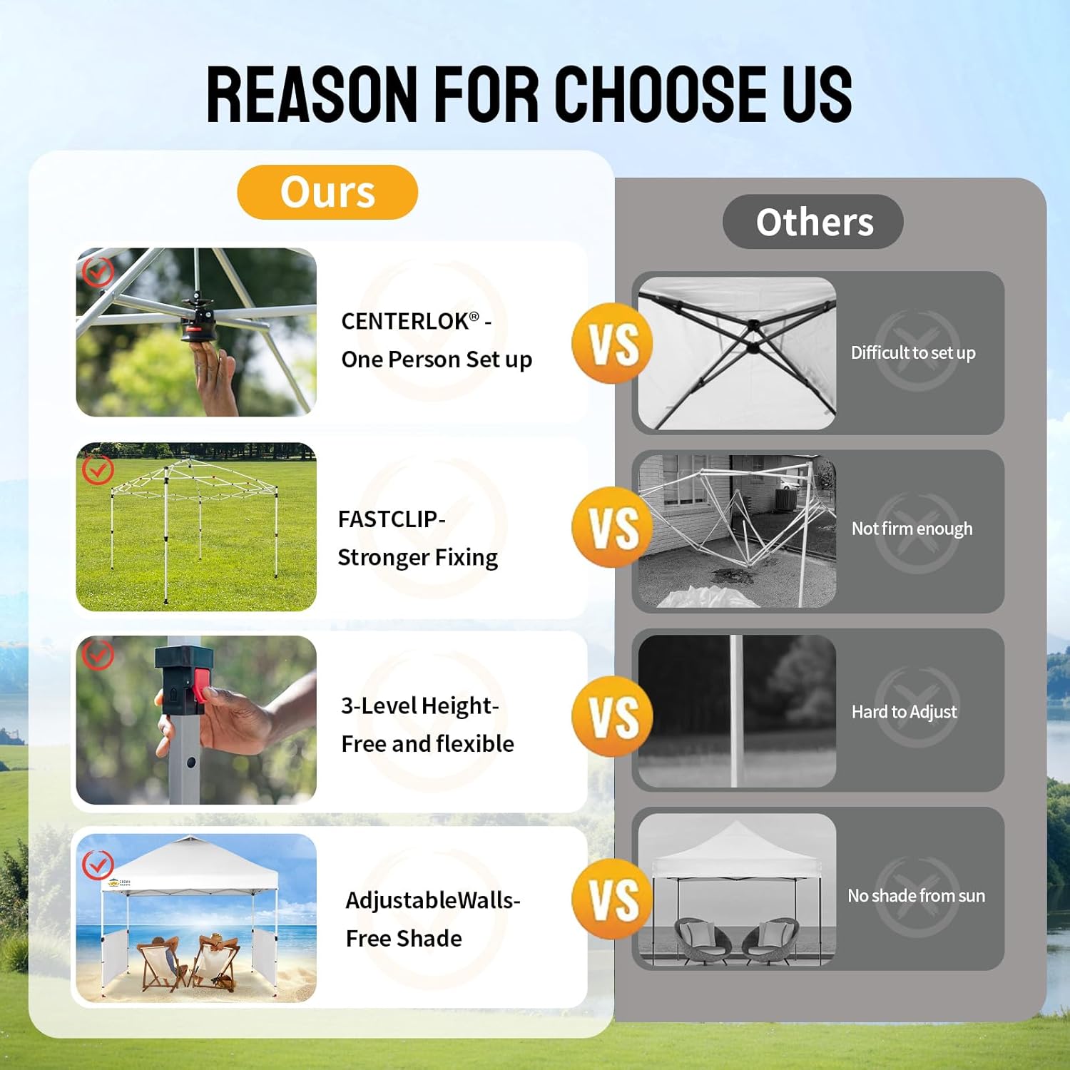 - [OUR PROMISE]: Experience our amazing customer service! We are here to support your canopy. We are available around the clock to help correct any problems or questions you might have with our Crown Shades products.