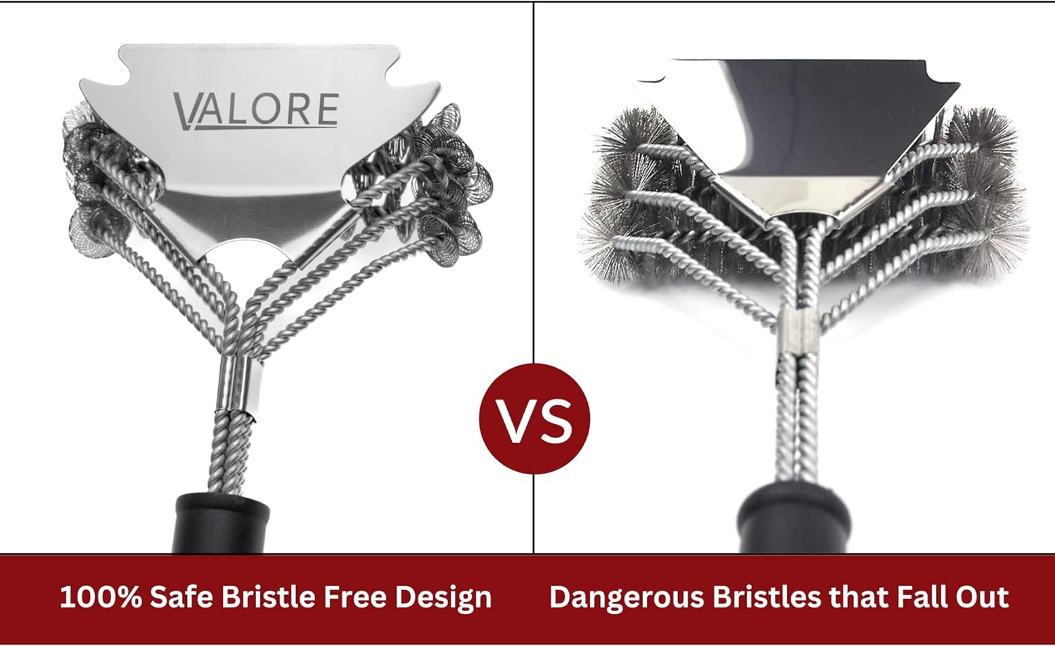 Valore BBQ Brush Bristle Free – 2 in 1 Grill Scraper & Barbecue Brush – Stainless Steel BBQ Grill Brush & BBQ Scraper Combo for Outdoor Grills – BBQ Brushes for Grill