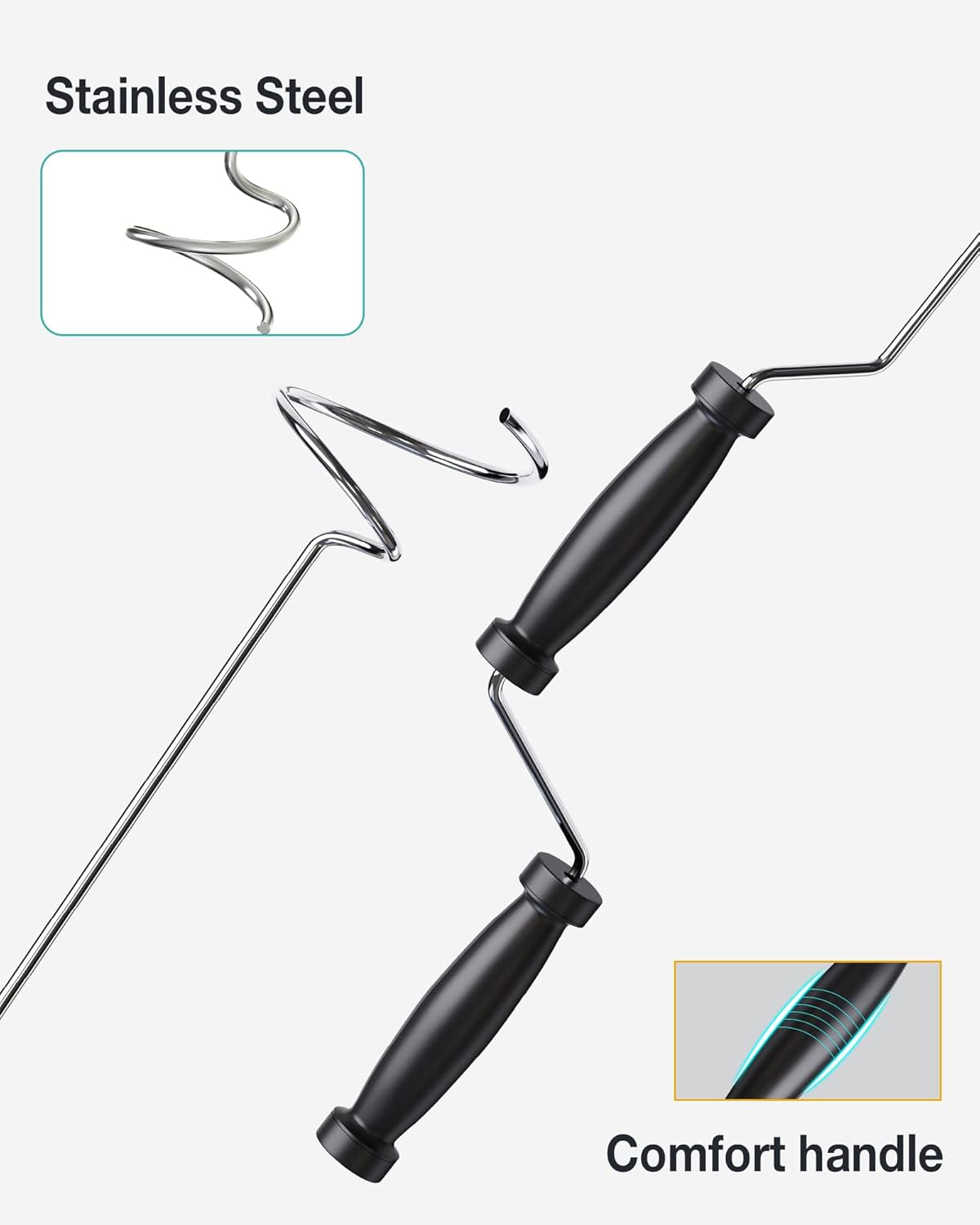 - Corkscrew-Like Design - This compost turner is crafted from sturdy steel with a free spinning hardwood handle, allowing the user to aerate compost with ease and efficiency, and without strain.