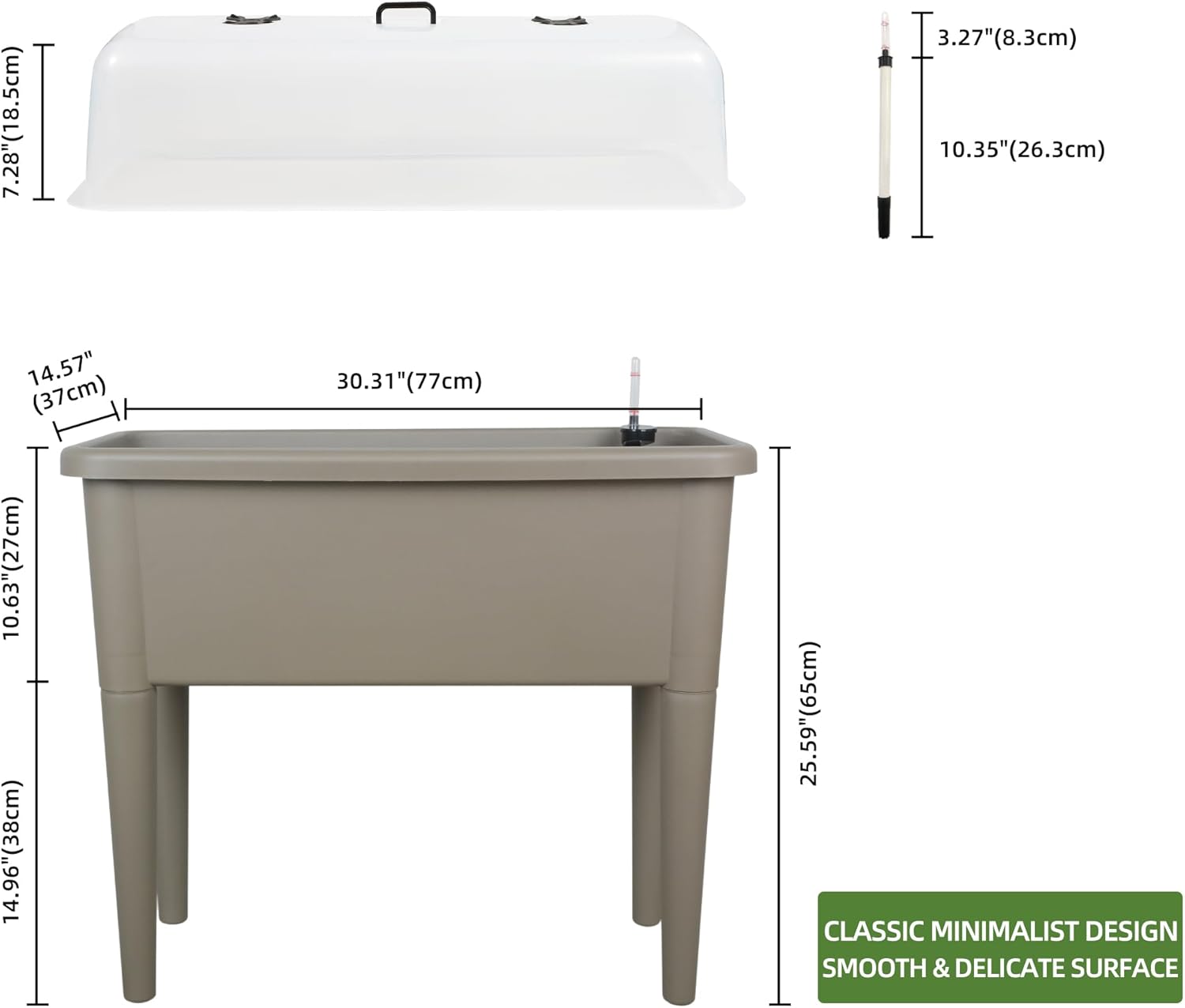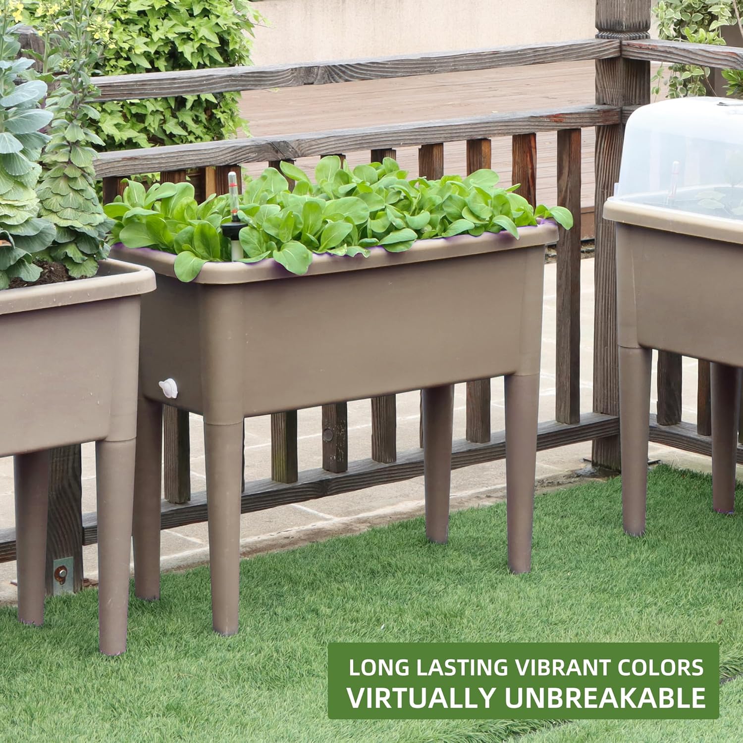 Dexceder 13.2 Gallon Self Watering Raised Garden Bed with Ventilation Transparent Lid Greenhouse, Deepen Vegetable Flower Box Planter Pot with Removeble Legs&Water Level Indicator (Light Brown)