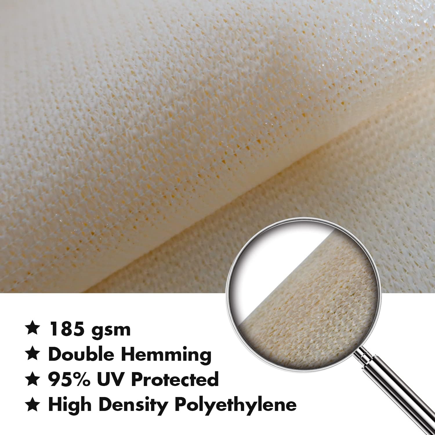 - High Quality Materials: Made of 100% brand new 185 GSM HDPE (high density polyethylene) material.Our sunshade sail is attached with DOUBLE layer webbing in each side and stainless steel D rings in corners to make the sun sail shades stronger and more durable