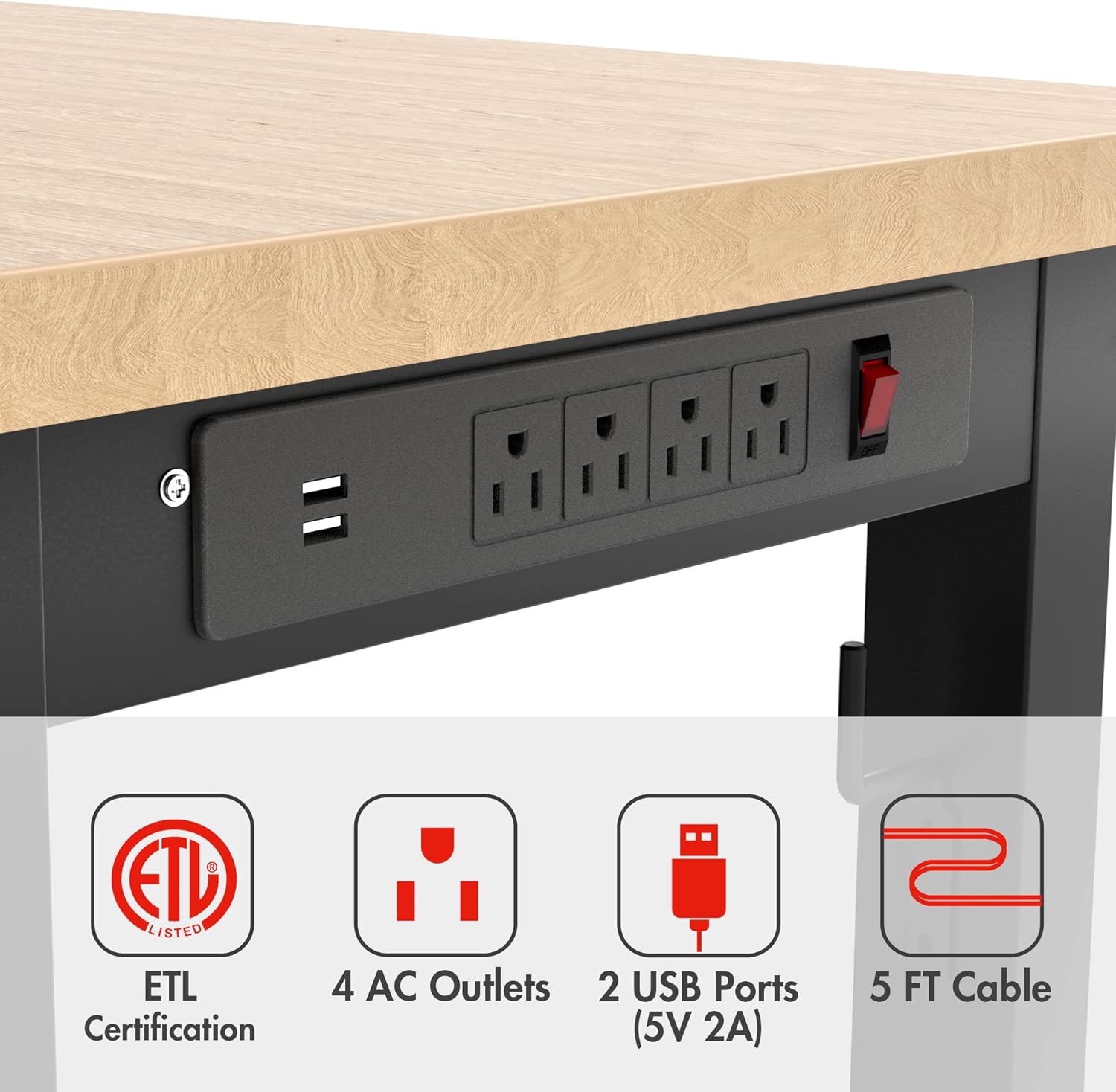 WORKPRO 48" Adjustable Workbench, Rubber Wood Top Heavy-Duty Workstation, 2000 LBS Load Capacity Hardwood Worktable with Power Outlets, for Workshop, Garage, Pack of 10