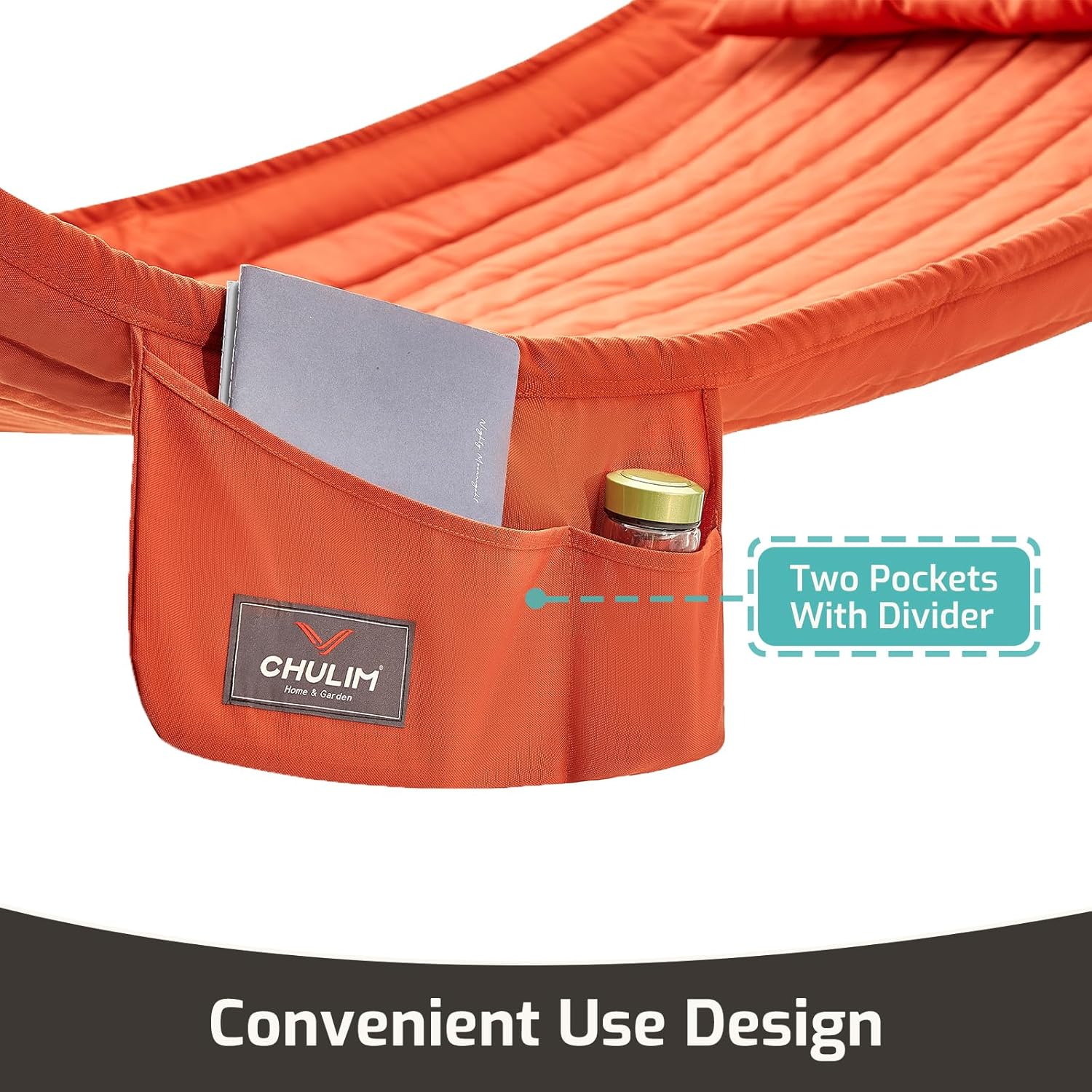 Double Quilted Fabric Hammock with Hardwood Spreader Bars and Pillow 450 LBS Capacity 2 Person Large Hammock for Outdoor Patio Backyard Poolside - Terracotta