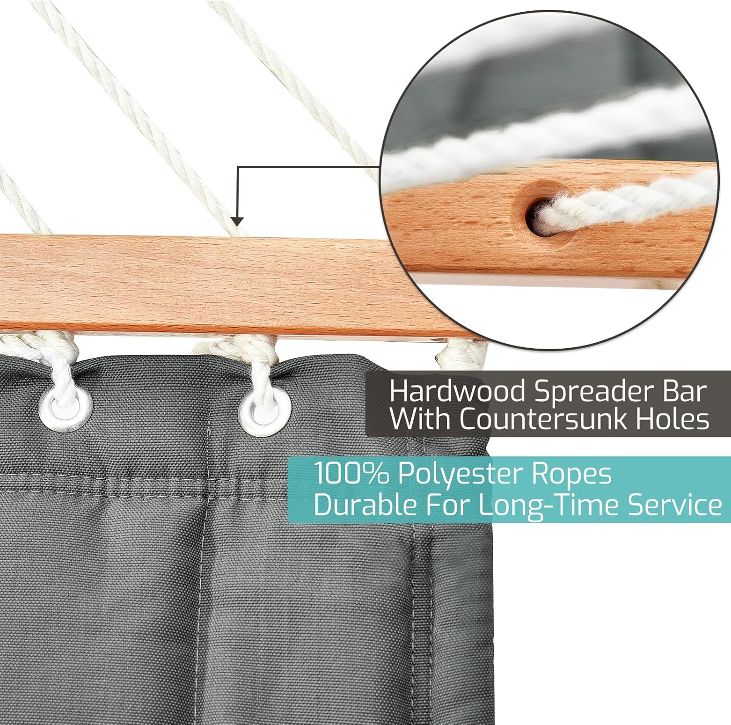 Double Quilted Fabric Hammock with Hardwood Spreader Bars and Pillow 450 LBS Capacity 2 Person Large Hammock for Outdoor Patio Backyard Poolside - Dark Grey