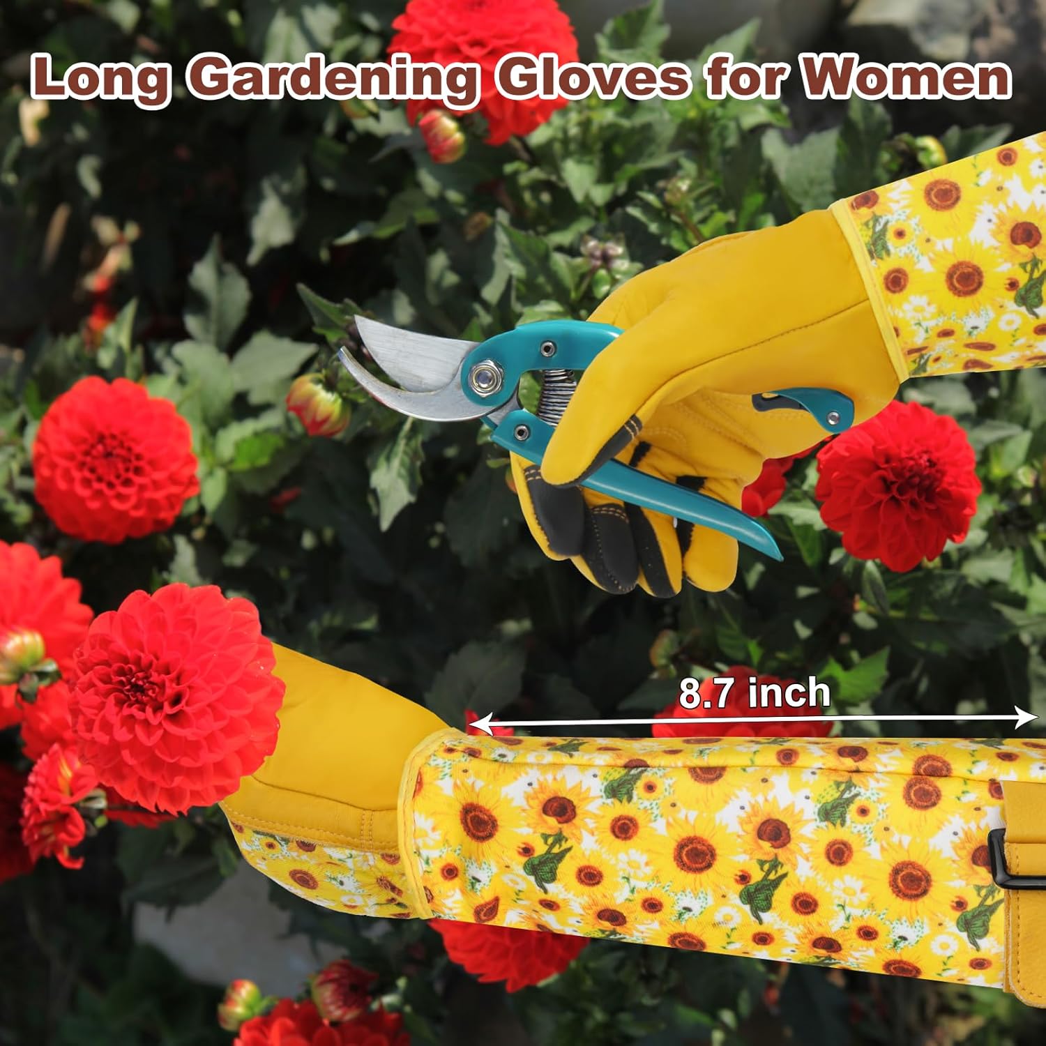 DLY Gardening Gloves for Women, Rose Gloves Gardening Thorn Proof, Long Garden Gloves for Women, Breathable Cowhide Leather Gauntlet (Medium, Yellow
