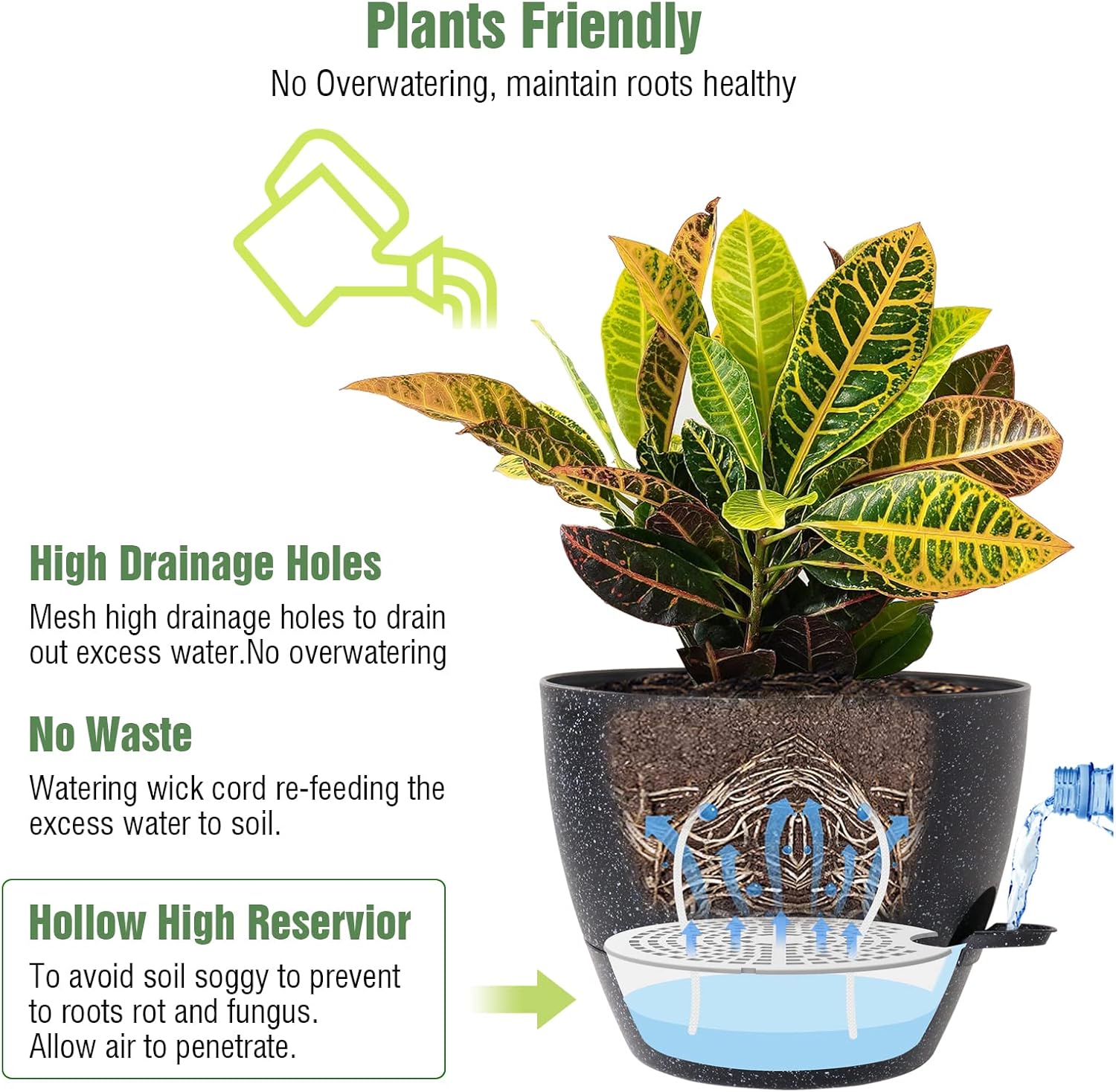 - Removable Watering Feeder: Allows watering from bottom or top without overwatering or root rot.