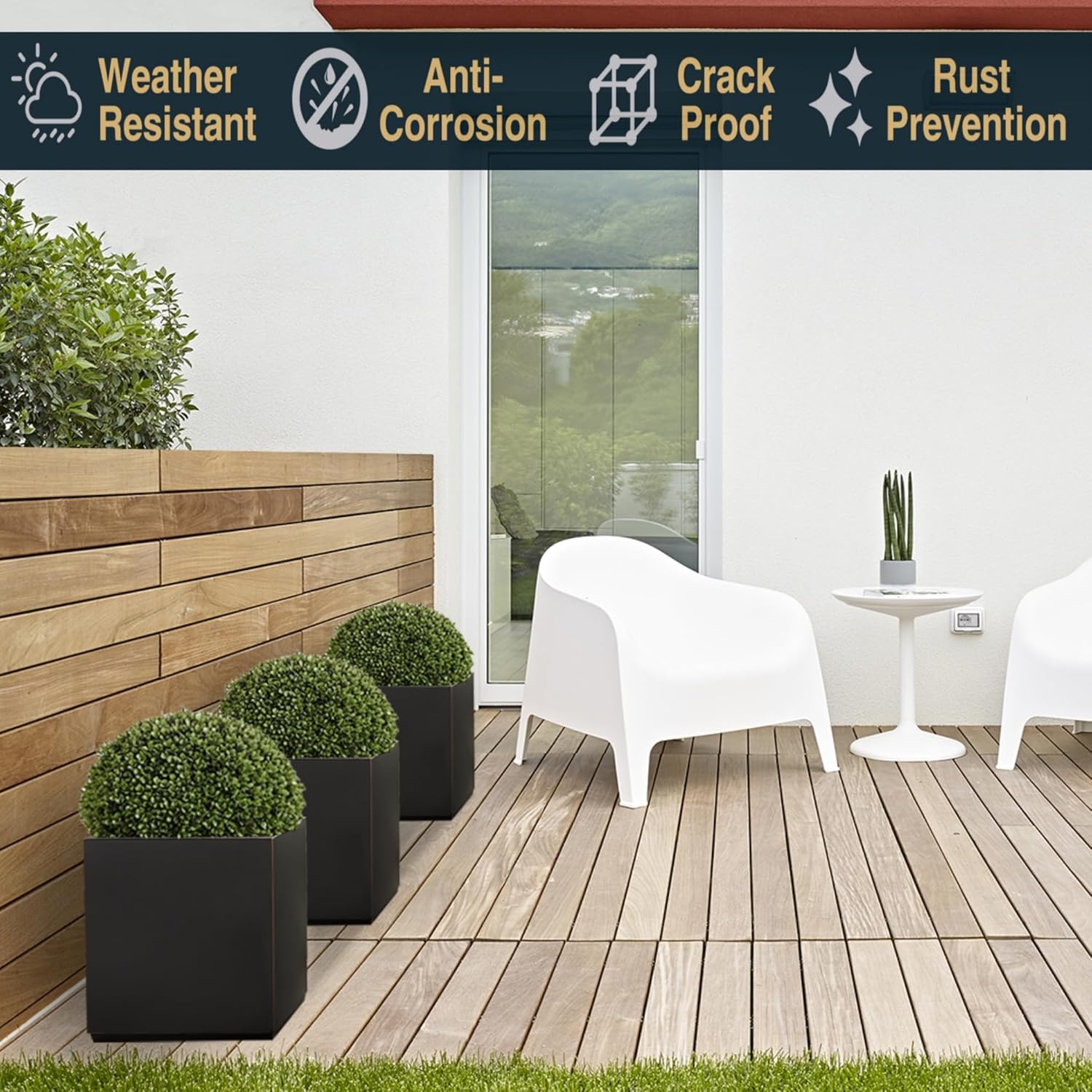 - WEATHER RESISTANT: This metal planter box is designed to withstand any kind of weather. Adopted advanced spray painting technology, the surface paint layer can prevent corrosion and rust. The salt spray resistance time of the flowerpot surface can reach 400 hours.