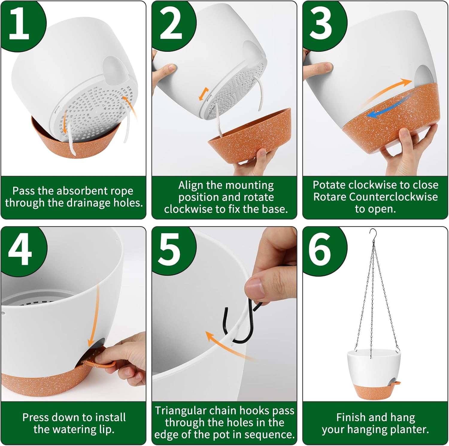 - 【Excellent Drainage Holes and Watering Lip】These flower pots for plants come with multiple drainage holes in the bottom. The holes and watering lip provide an air circulation system for the plant roots, which greatly reduces the problem of root rot of plants in a closed environment. The independent watering lip replenishes water for plants, so that water does not have to pass through the plant itself, At the same time, it is convenient to observe the current water level.
